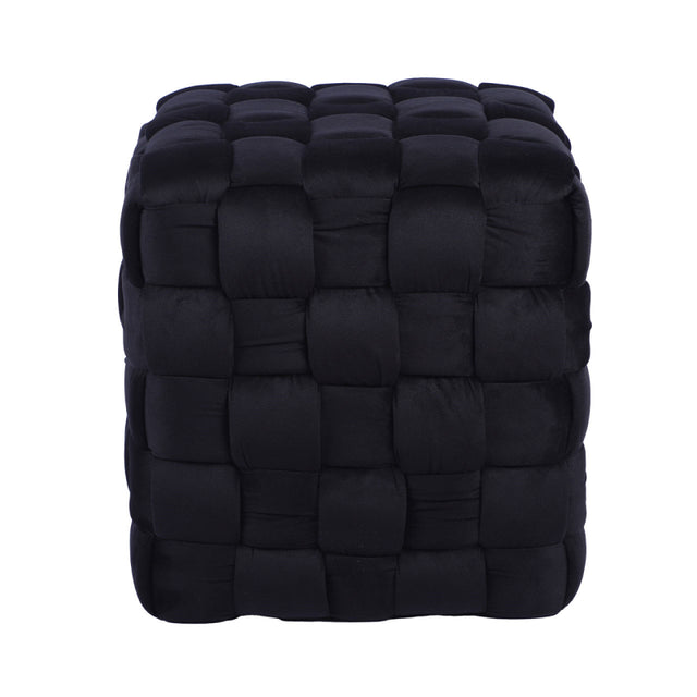 Indulge in the luxurious charm of the Black Velvet Woven Ottoman, a perfect fusion of comfort and contemporary elegance. This exquisite piece, upholstered in plush black velvet with a distinctive woven texture, serves as an ideal footrest, additional seating, or a chic accent that enhances any space.