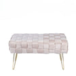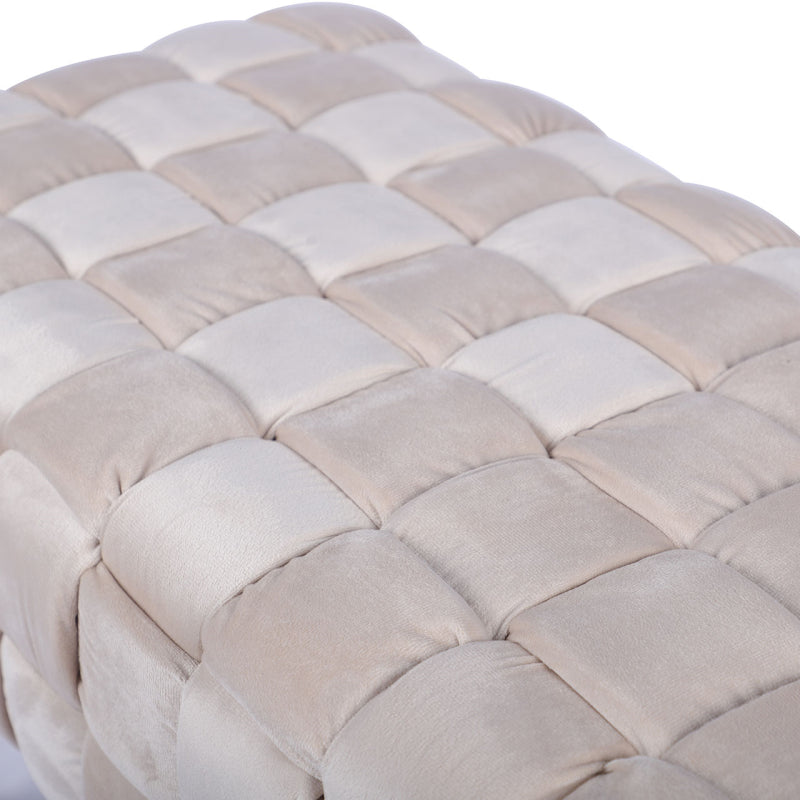 Elevate your living space with the luxurious Dark Cream Velvet Woven Bench, a stunning fusion of comfort and style. Upholstered in sumptuous velvet, its woven design offers a sophisticated touch, while the elegant gold legs exude opulence, making it a perfect statement piece for any room.