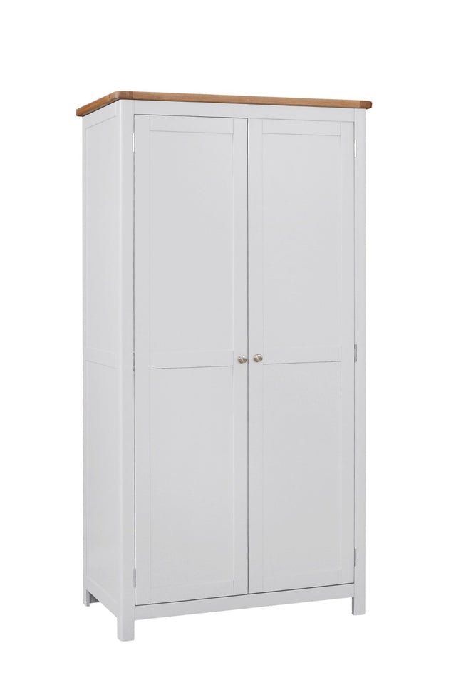 The Kylie Wardrobe from our storage furniture collection is a perfect blend of style and functionality. This elegant bedroom storage solution features a sophisticated silent grey finish with oak trims and chrome knobs, adding a touch of contemporary charm to your living space.