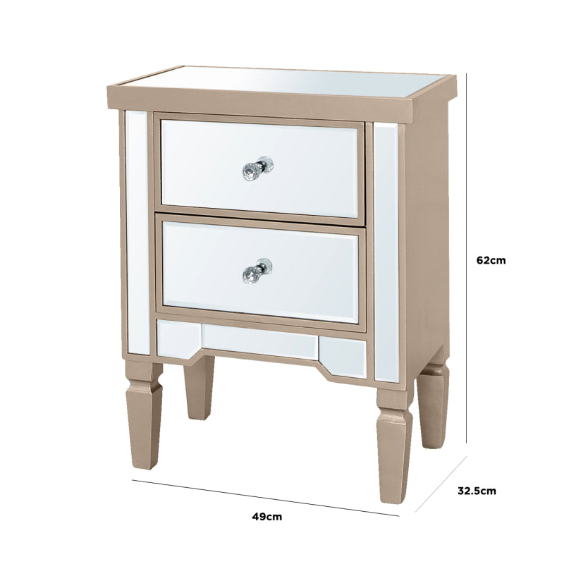 Vista 2 Drawer Dark Champagne Wood & Mirror Bedside Cabinet