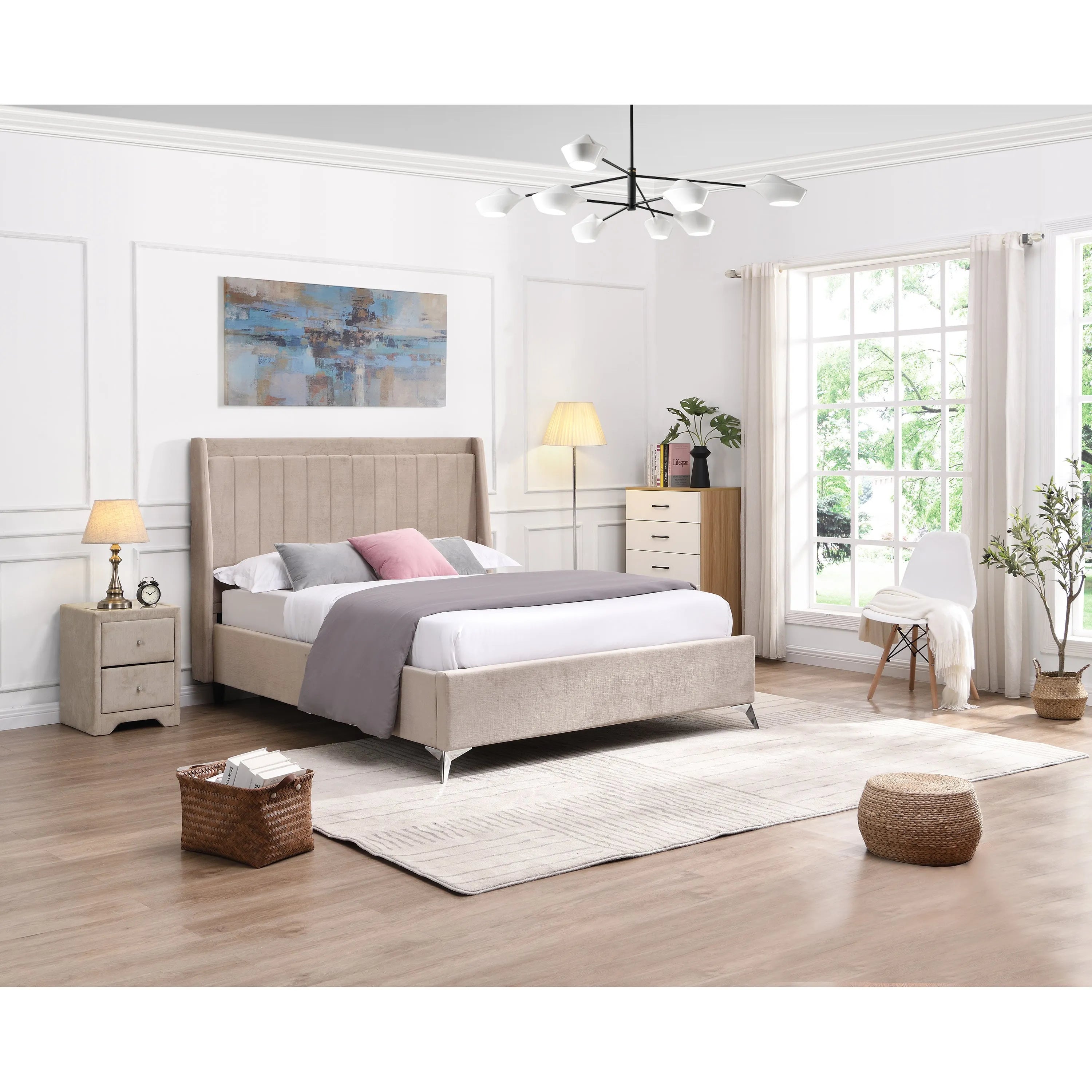 The Mayo bed in beige is a must-have, boasting a perfect combination of style and timeless simplicity. The low footend design allows for optimal space utilisation in any room. Featuring stylish chrome feet that create a modern look, the slightly winged headboard is coupled with a luxury panelled design to offer both comfort and aesthetic appeal. Available in popular Grey and Beige colours, this beautiful bed comes in 4ft 6 and 5ft sizes.