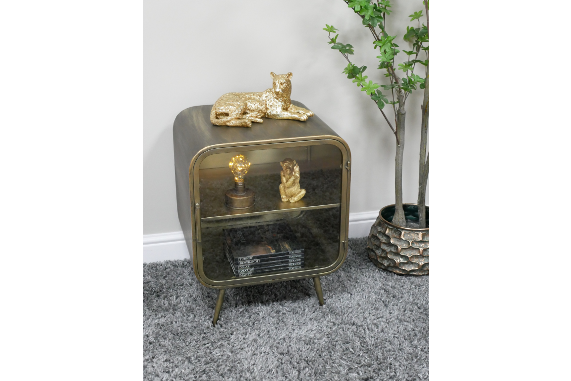 The metal frame provides durability and stability, while the glass shelves add a touch of sophistication. This bedside cabinet is perfect for keeping nighttime essentials within reach, such as books, lamps, or a glass of water, while also adding a touch of sophistication to your bedroom.