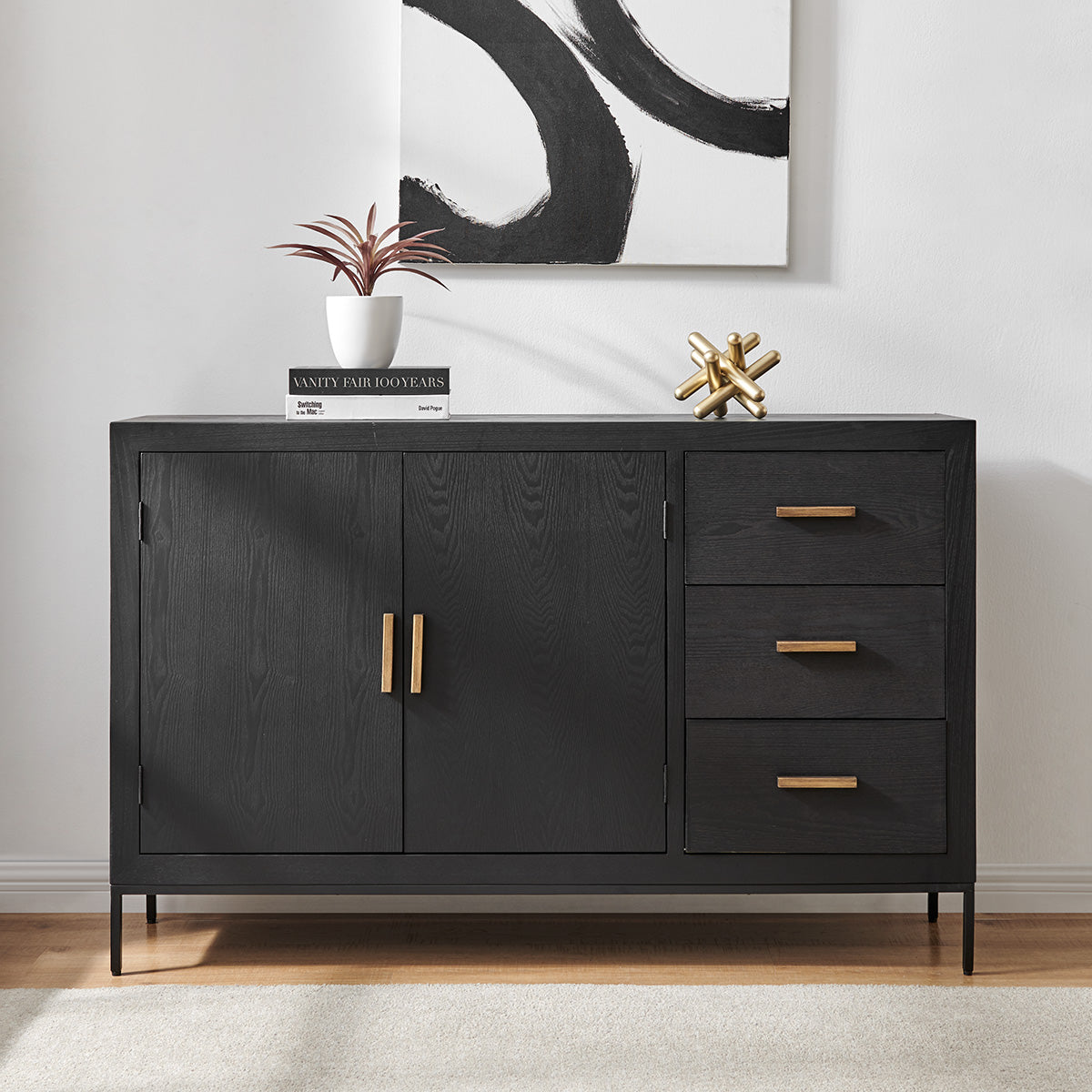 The Brixton Sideboard combines sleek and timeless design with ample storage space. Crafted from high-quality plywood veneer, fir, and metal, this sideboard exudes contemporary elegance that will enhance any living space.