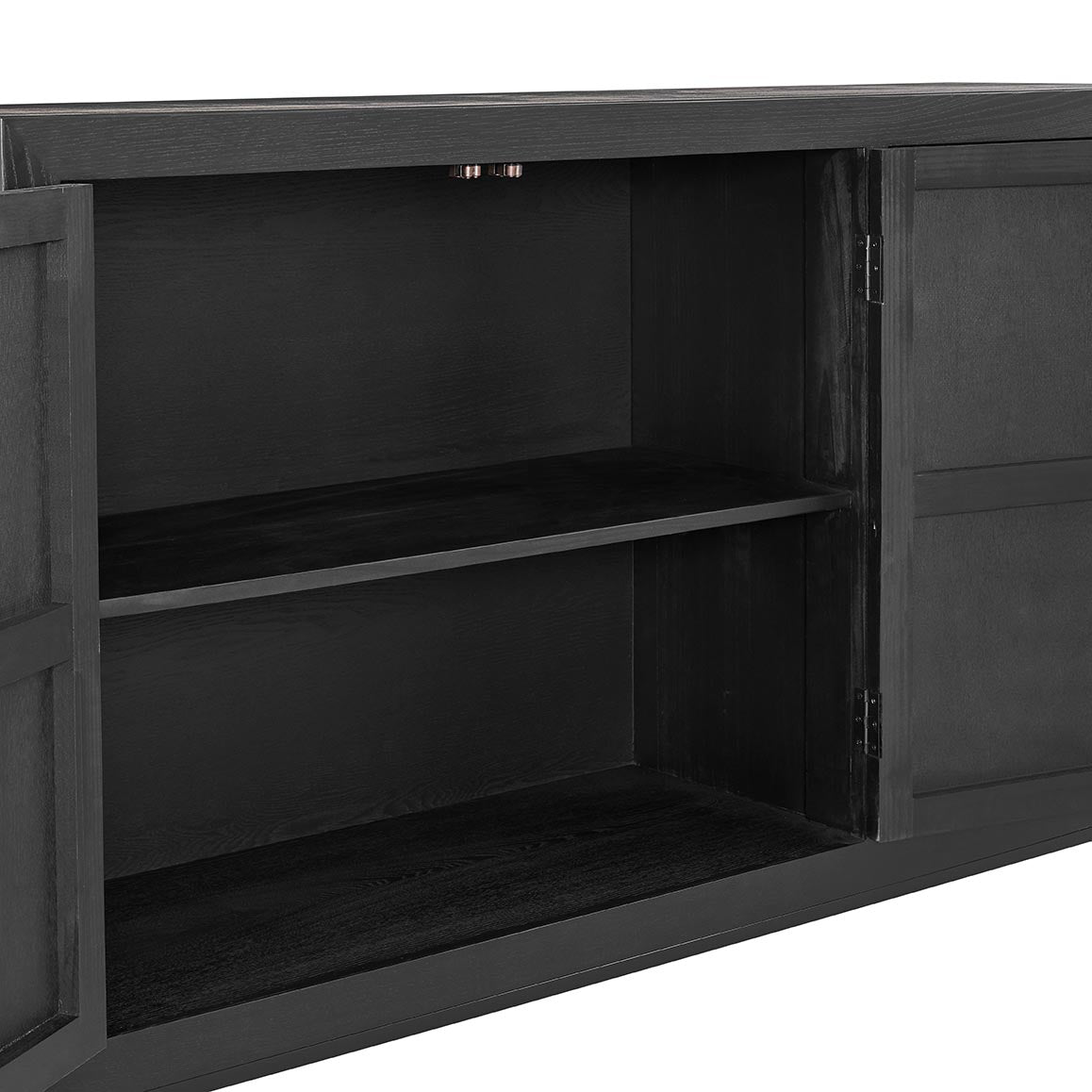 This TV unit is crafted from high-quality materials including plywood veneer, fir, and metal. With no assembly required, it offers convenience and ease of use, making it a perfect choice for modern homes seeking both style and functionality.