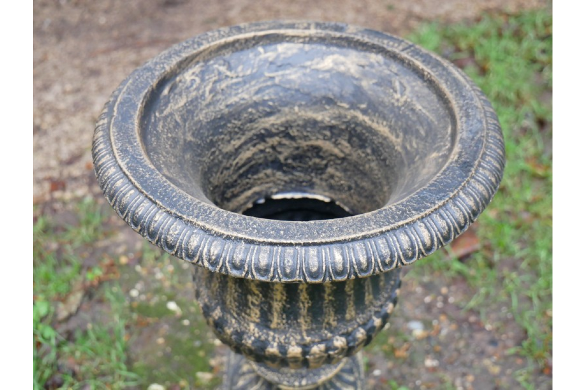 The C4 Urn & Base in Bronze Finish exudes elegance and sophistication with its classic design. Crafted from durable cast iron, this set adds a touch of timeless charm to any outdoor space. The urn's intricate detailing and the base's sturdy construction complement each other, creating a stunning focal point in gardens, patios, or entranceways.