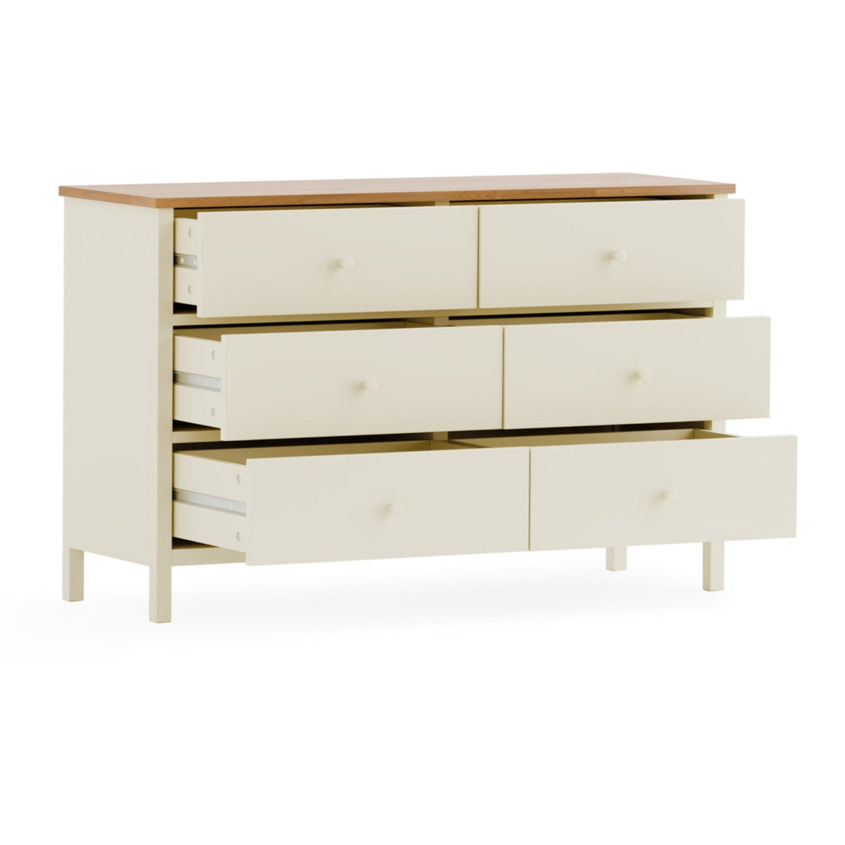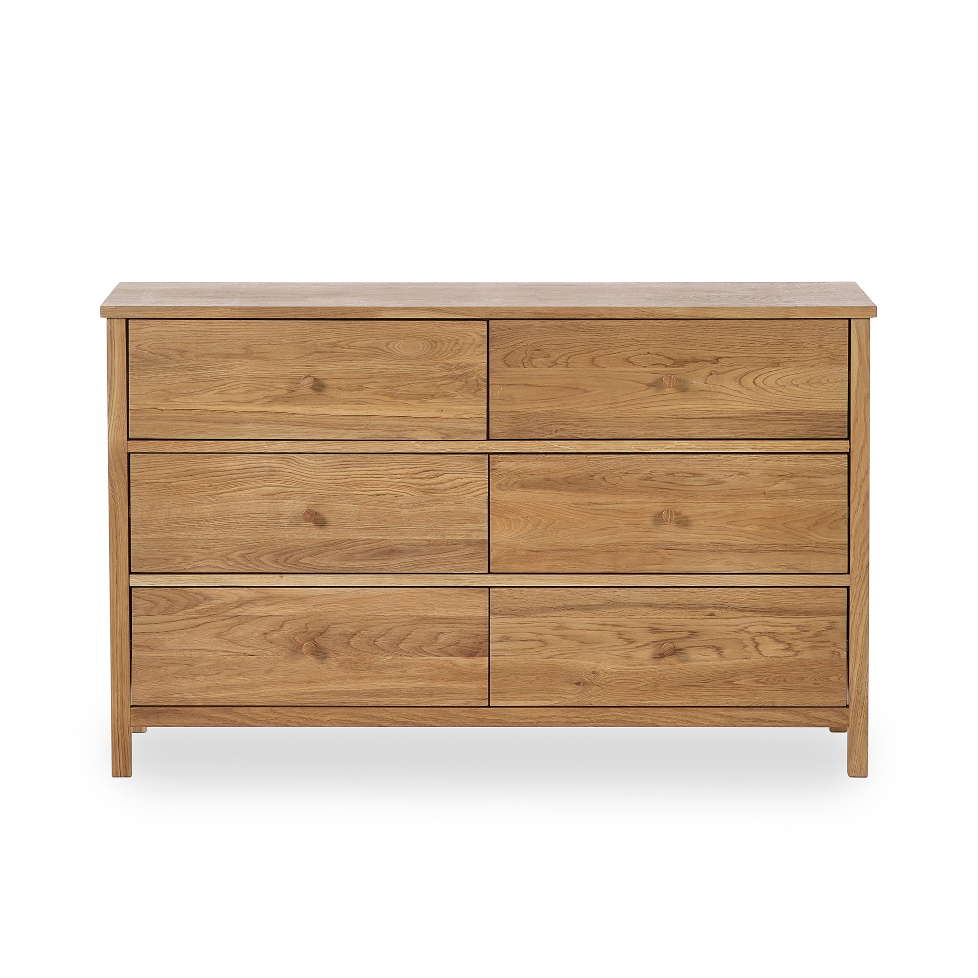 Enhance your bedroom storage with the Coxmoor 6 Drawer Chest in Oak. Featuring six spacious drawers with elegant knob handles, it offers plenty of room for clothing, bedding, and other essentials. The sleek oak finish brings a touch of sophistication to your space, while the design ensures both practicality and style. Perfect for adding extra storage to your bedroom without compromising on elegance, this chest is built to last with its durable oak finish. A timeless combination of form and function, it's a versatile addition to any home and easy to assemble.