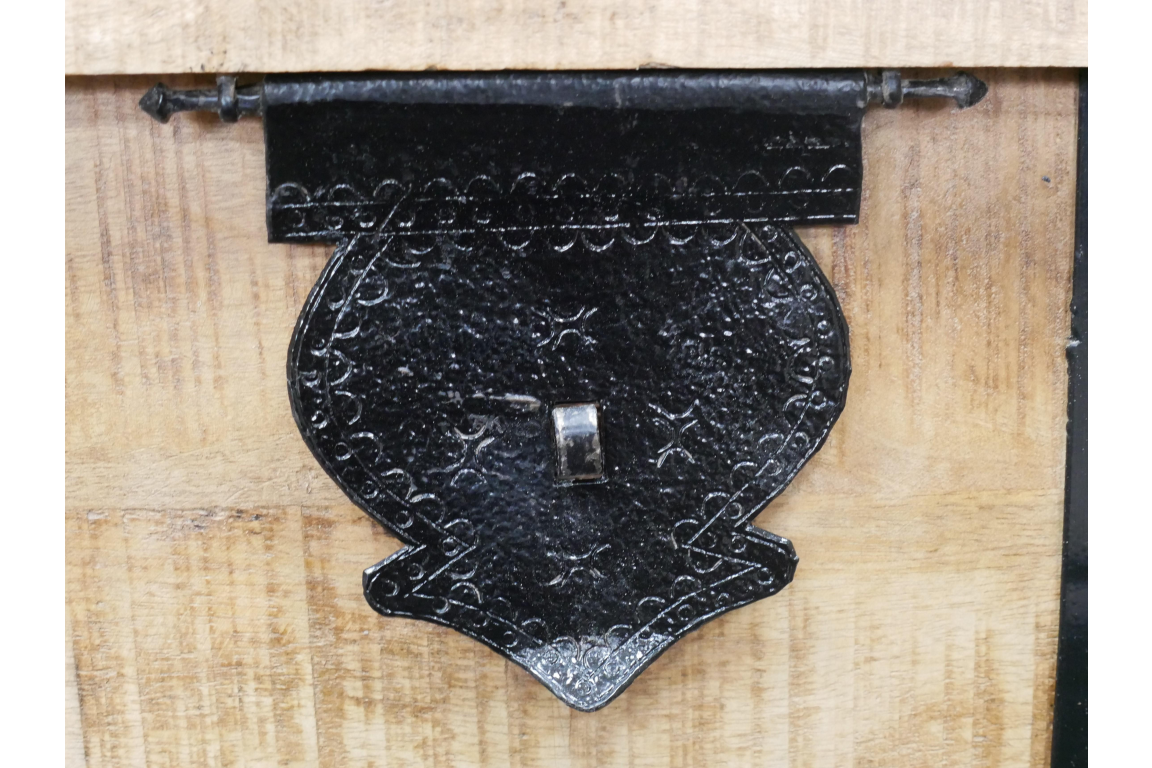 This large trunk doubles as a stylish coffee table, adding a touch of rustic charm to any living space. Crafted from mango wood, its natural grain and warm tones bring a sense of earthy elegance to the room.