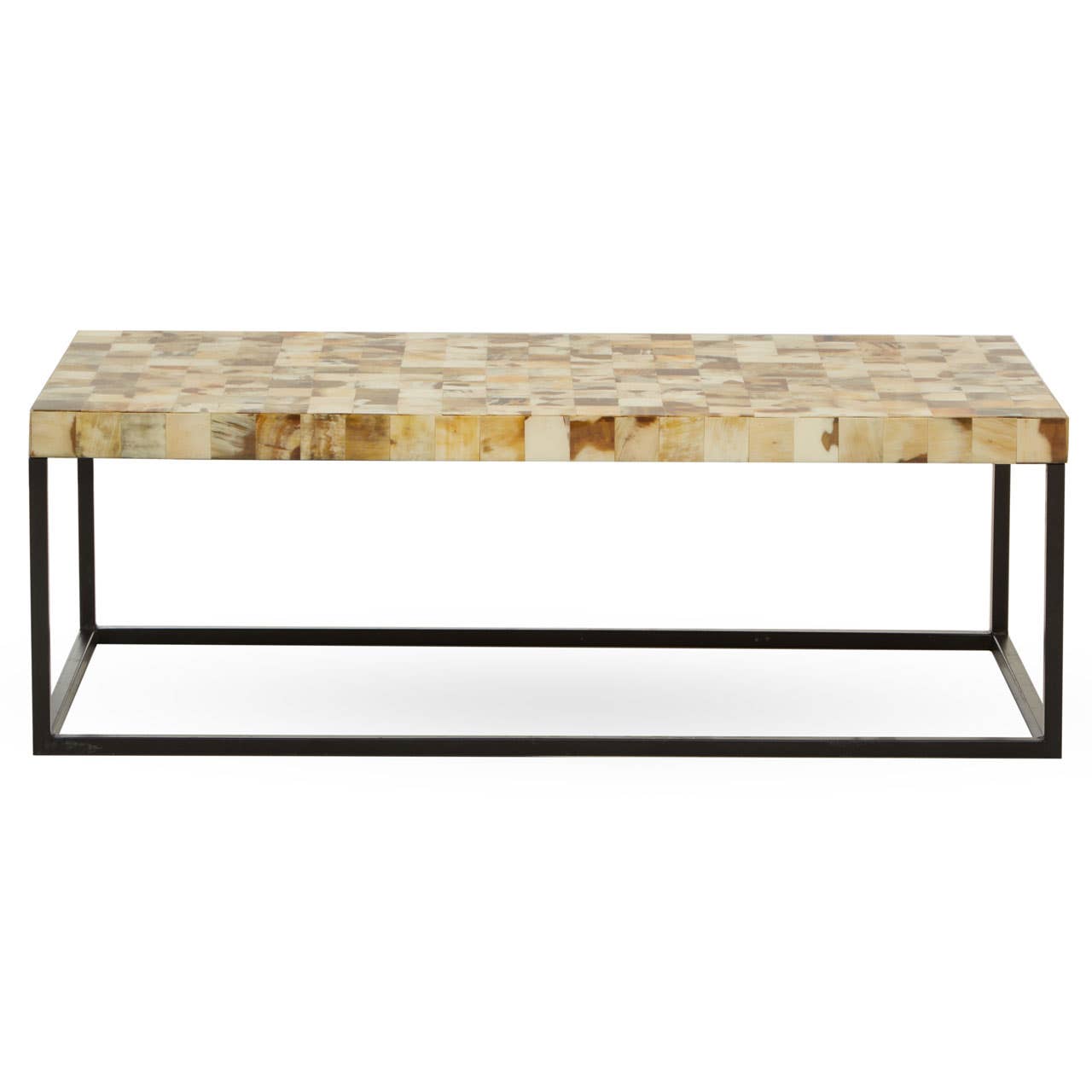 Elevate your living space with the Obra Cream Mother of Pearl Rectangle Coffee Table. This stunning piece features a luxurious cream mother of pearl tabletop that exudes elegance and sophistication. The black iron frame adds a touch of modernity, making it the focal point of any room. Perfect for contemporary interiors, this coffee table seamlessly blends style and functionality, creating a chic and inviting atmosphere in your home. Add a touch of opulence to your decor with the Obra Coffee Table.