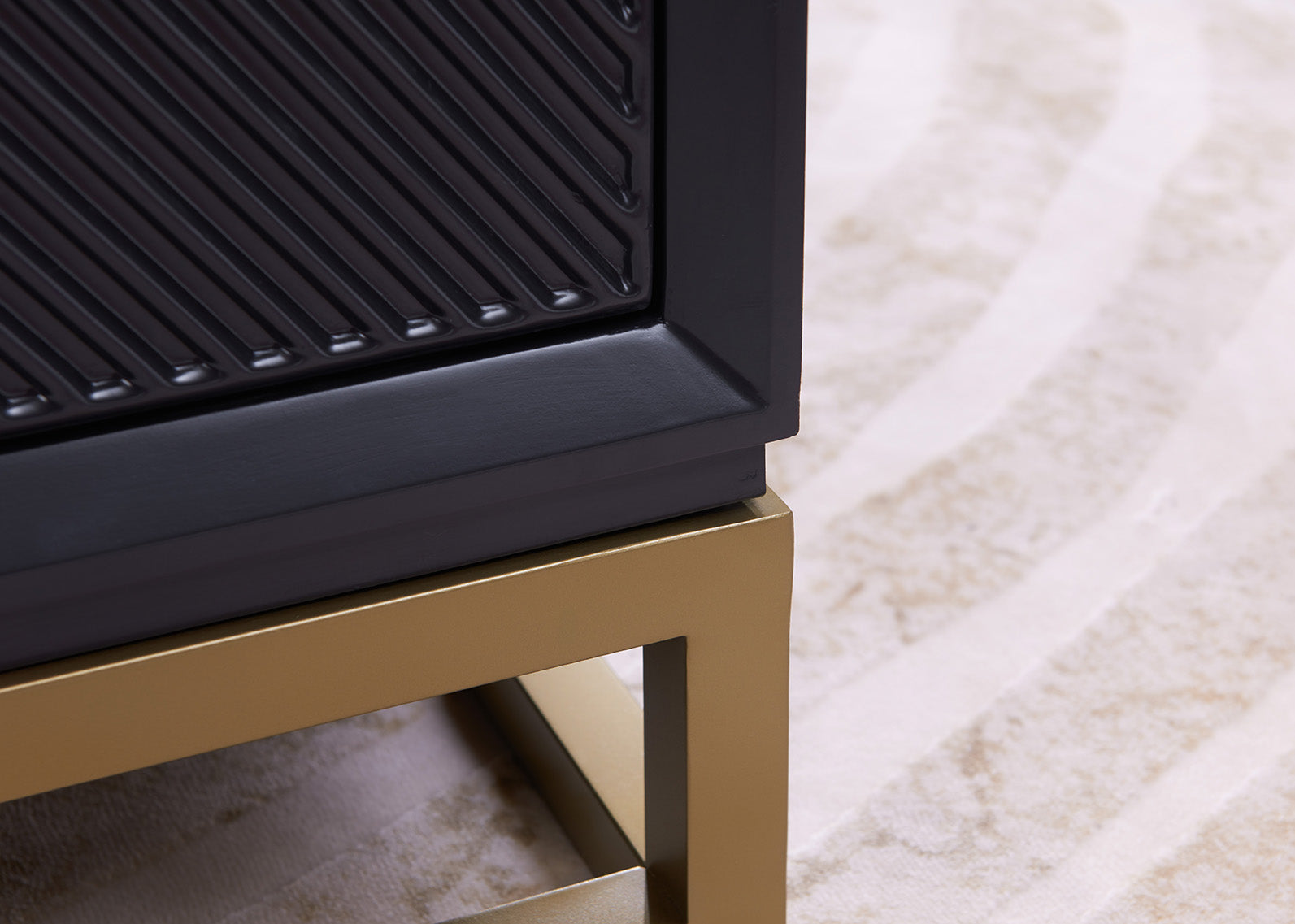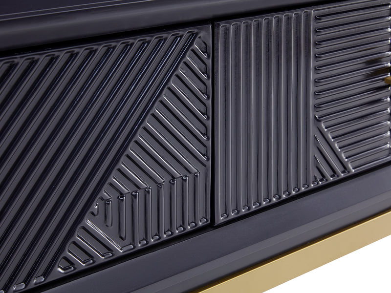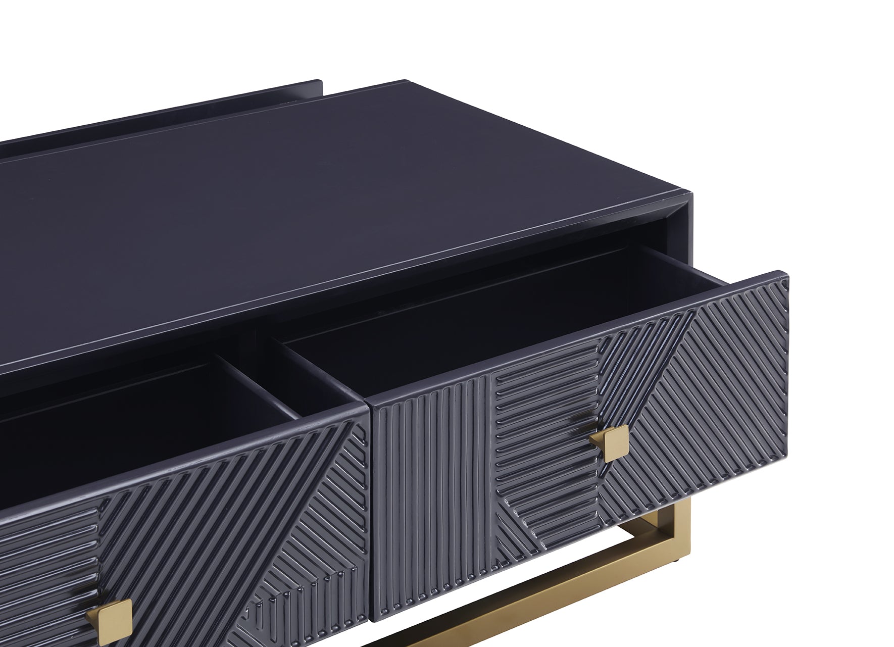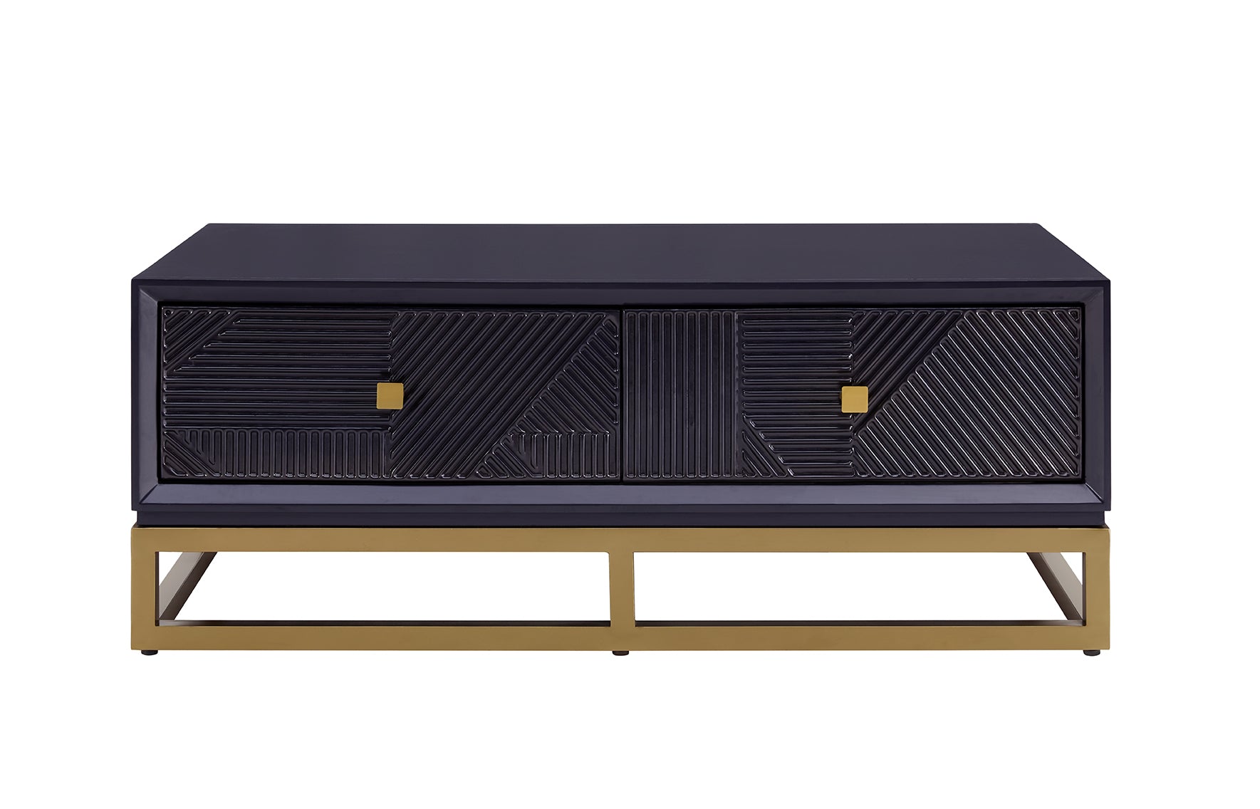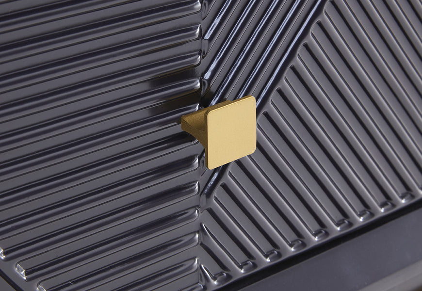 The Orlando Coffee Table combines modern elegance with practical functionality, making it a perfect addition to any living room. Its sleek black gloss painted finish exudes sophistication, while chic golden handles add a touch of luxury. The table features geometric panels for a contemporary look that will elevate your space.