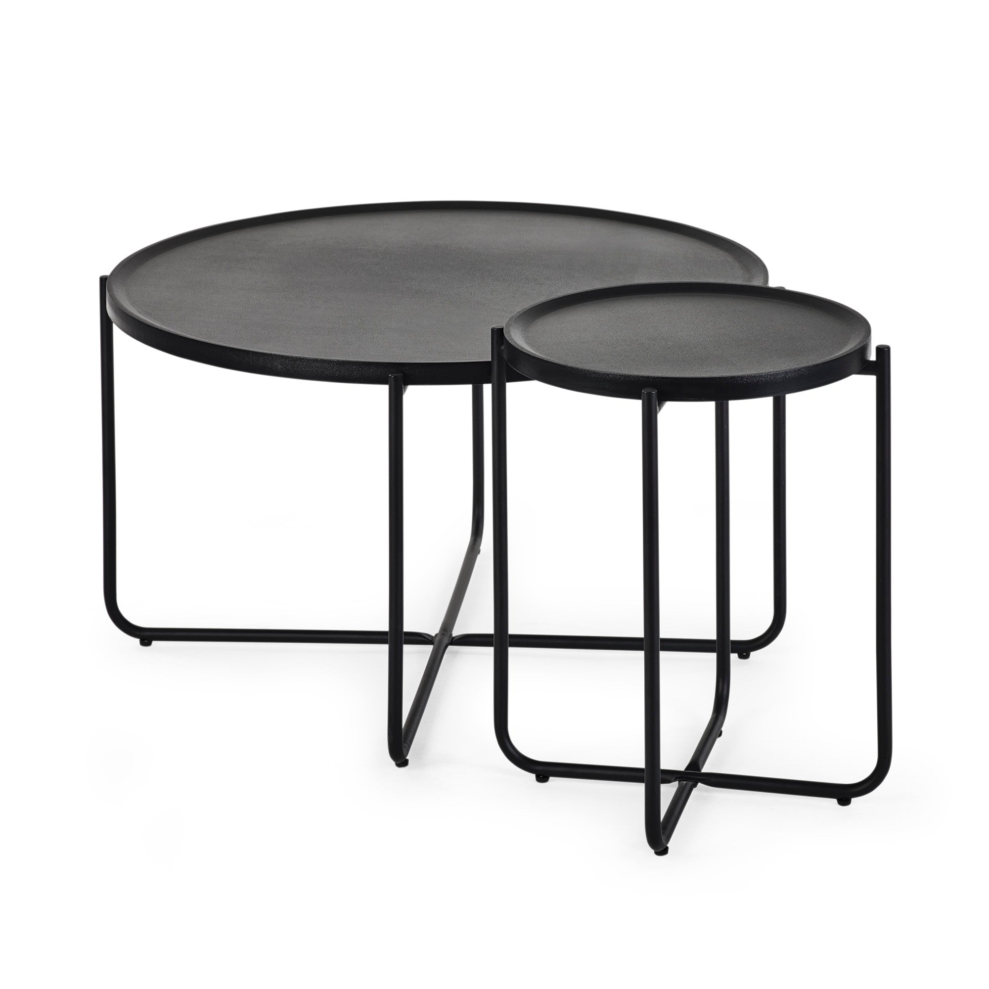 Bring a modern edge to your living room with this stylish coffee and lamp table set. Sleek black powder-coated frames form a clean, circular silhouette, paired with durable tops made for everyday use. The two sizes offer flexible styling options, nest them together for a layered look or use separately to suit your space. Minimal assembly required; simply attach the legs.