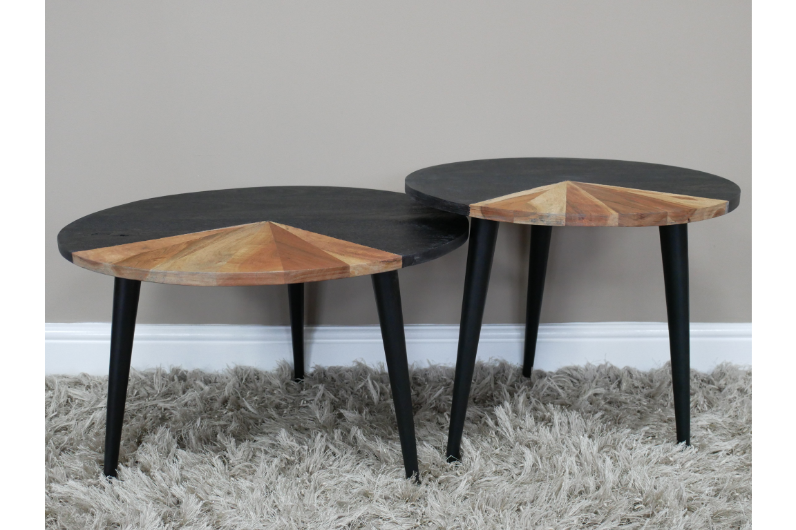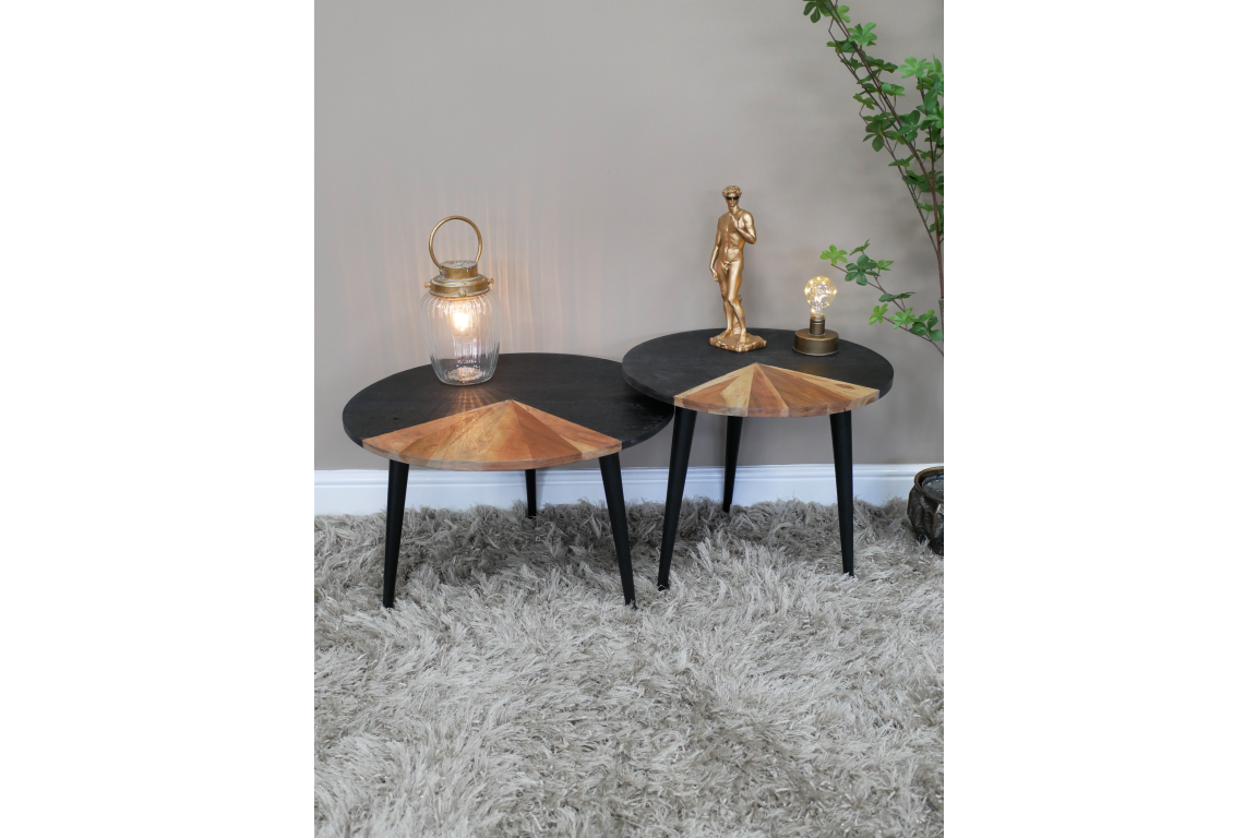 This set of two coffee tables exudes a modern industrial charm that will elevate any living space. Crafted from a combination of acacia wood and iron, these tables boast a stylish and sturdy design. The sleek lines and contrasting materials create a contemporary look that is both elegant and versatile.