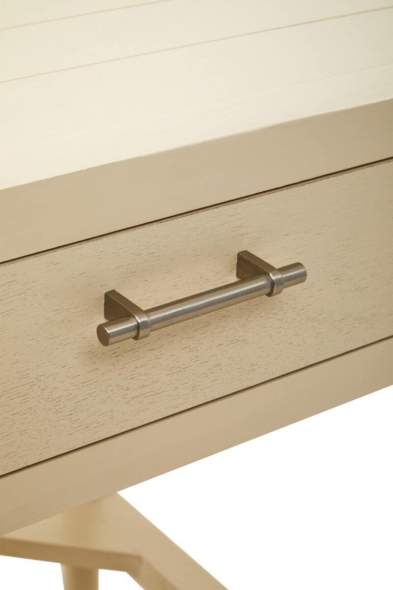 Elevate your home office with our Antique Pearl Pine Desk. Crafted from pine with an exquisite antique pearl finish, this desk exudes traditional charm with its intricately carved legs. The two drawers, complete with sleek metallic silver handles, offer practical storage space while adding a touch of modern elegance. Perfect for a classic yet stylish workspace, this desk seamlessly blends functionality with sophistication. Upgrade your office aesthetics with the timeless beauty of our Antique Pearl Pine Desk.