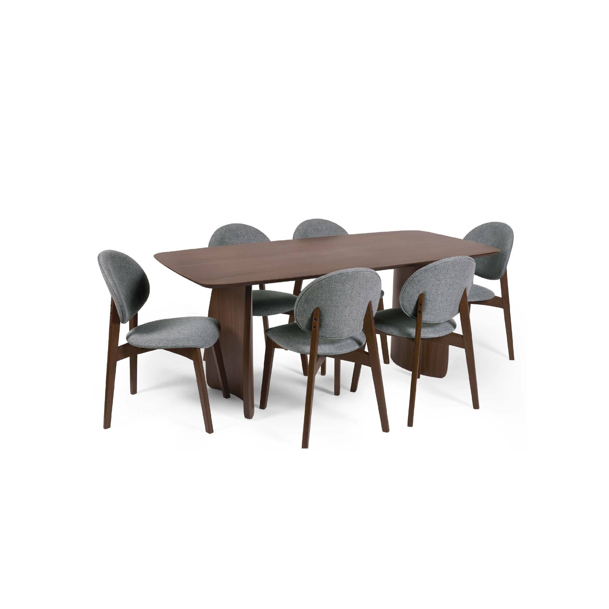 Add a refined, contemporary feel to your dining space with the Artemis Dining Chair Set. The warm walnut-effect wooden frame, clean lines, and gently curved backrest provide comfort and support. Upholstered in soft grey fabric, this chair complements both classic and modern settings, making it an ideal choice for everyday dining or entertaining guests. Minimal assembly required.