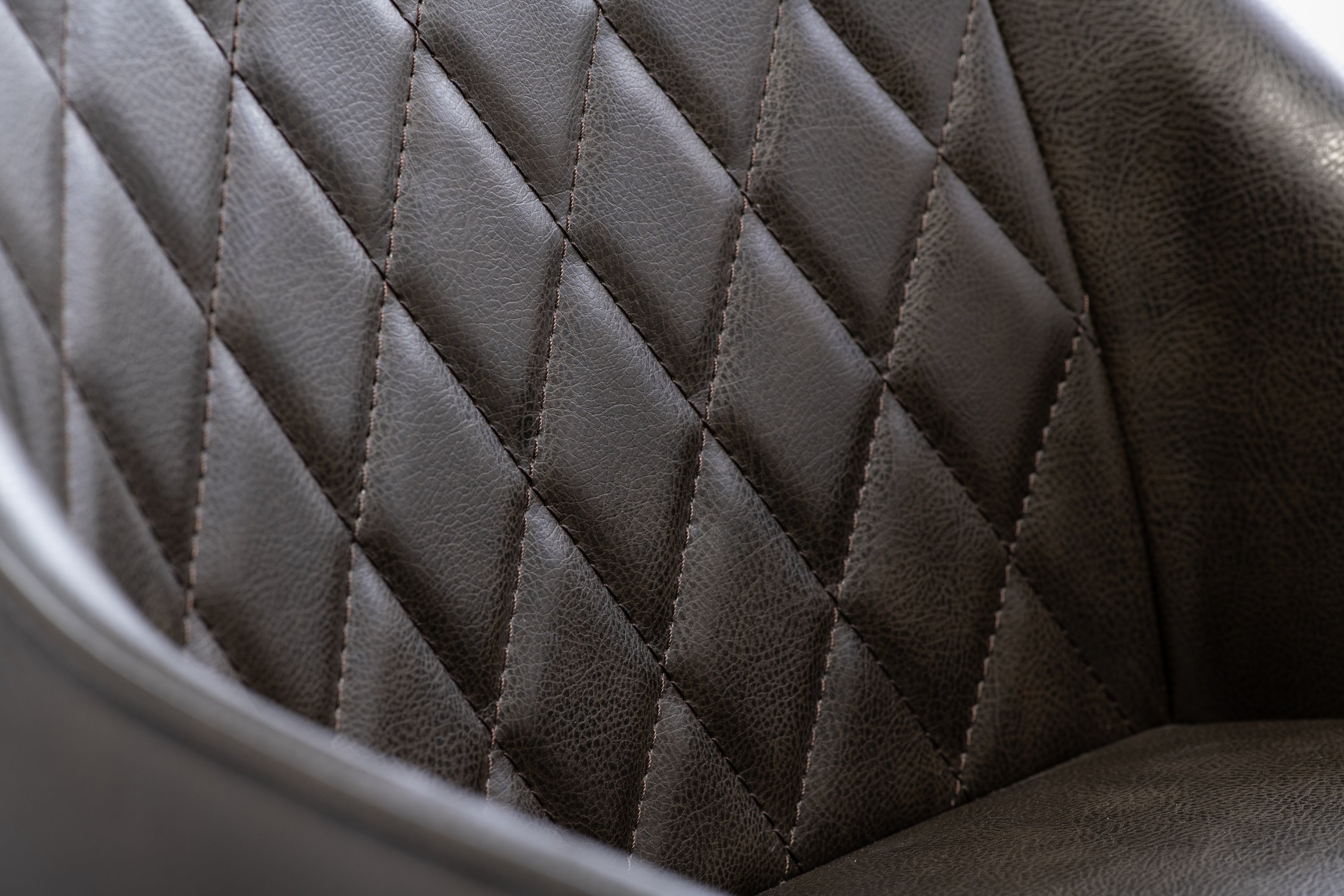 Introducing a striking blend of industrial elegance and modern comfort, this expertly crafted furniture piece adds a touch of sophistication to any setting. Upholstered in plush faux leather, it features exquisite stitching that enhances its contemporary aesthetic, making it a perfect addition to both casual and formal interiors.