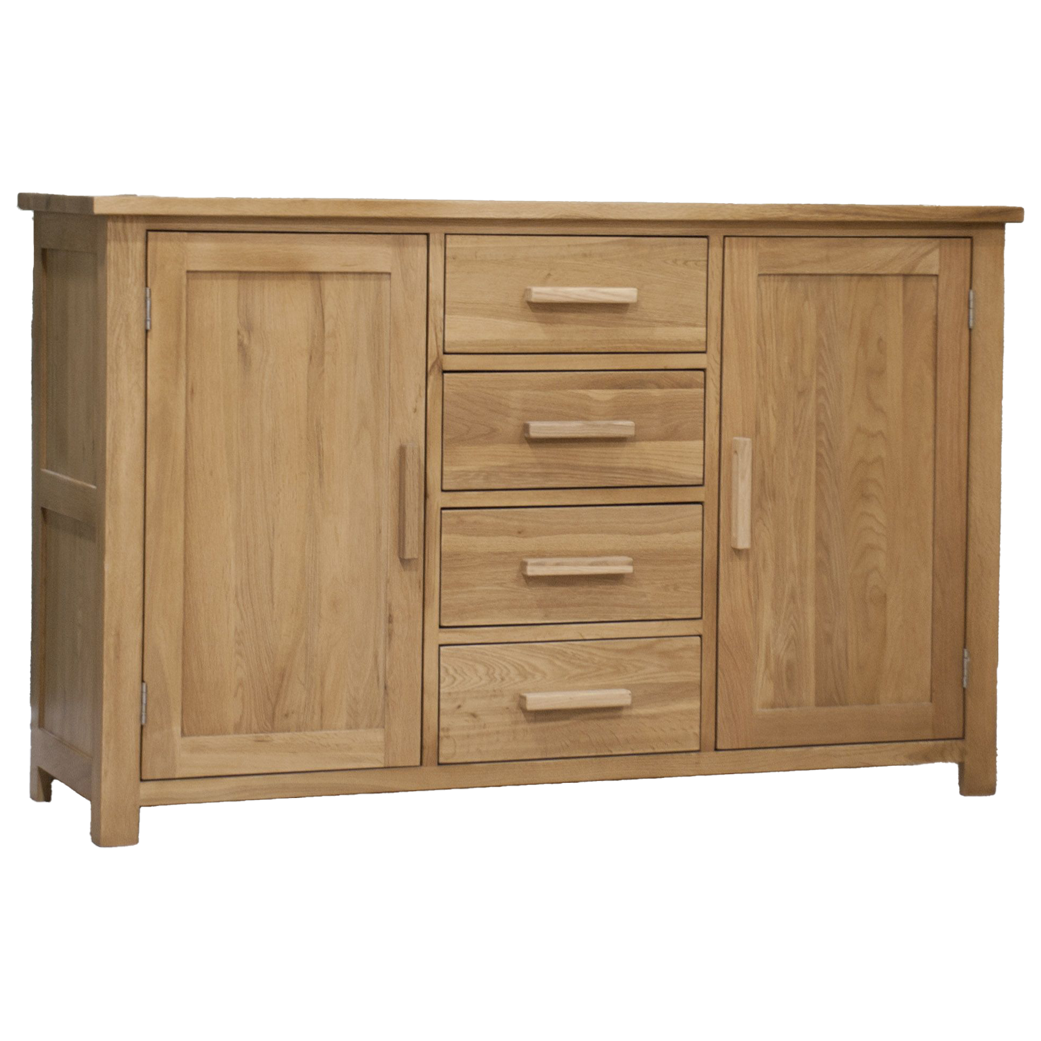 The Opus Large Sideboard is a stunning addition to any living space, exuding a blend of elegance and functionality. Crafted from 100% high-quality oak, its sleek design and modern aesthetic effortlessly complement any decor. This sideboard features a 2-door and 4-dovetail drawer configuration, offering ample storage space for your essentials. The inclusion of metal handles (OPUMETHAN) as standard, or the option to upgrade to additional oak handles (OPUOAKHAN), adds a touch of sophistication to its overall appeal. Adjustable oak shelves provide versatility, while the clear lacquer finish enhances its durability.