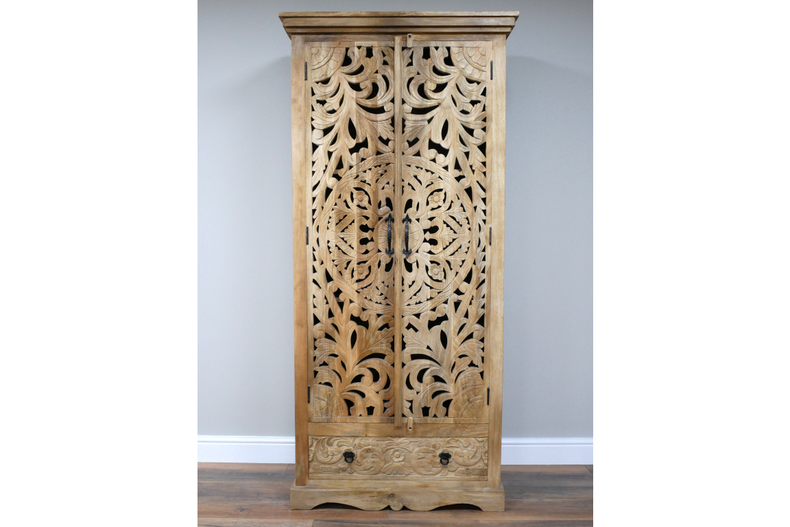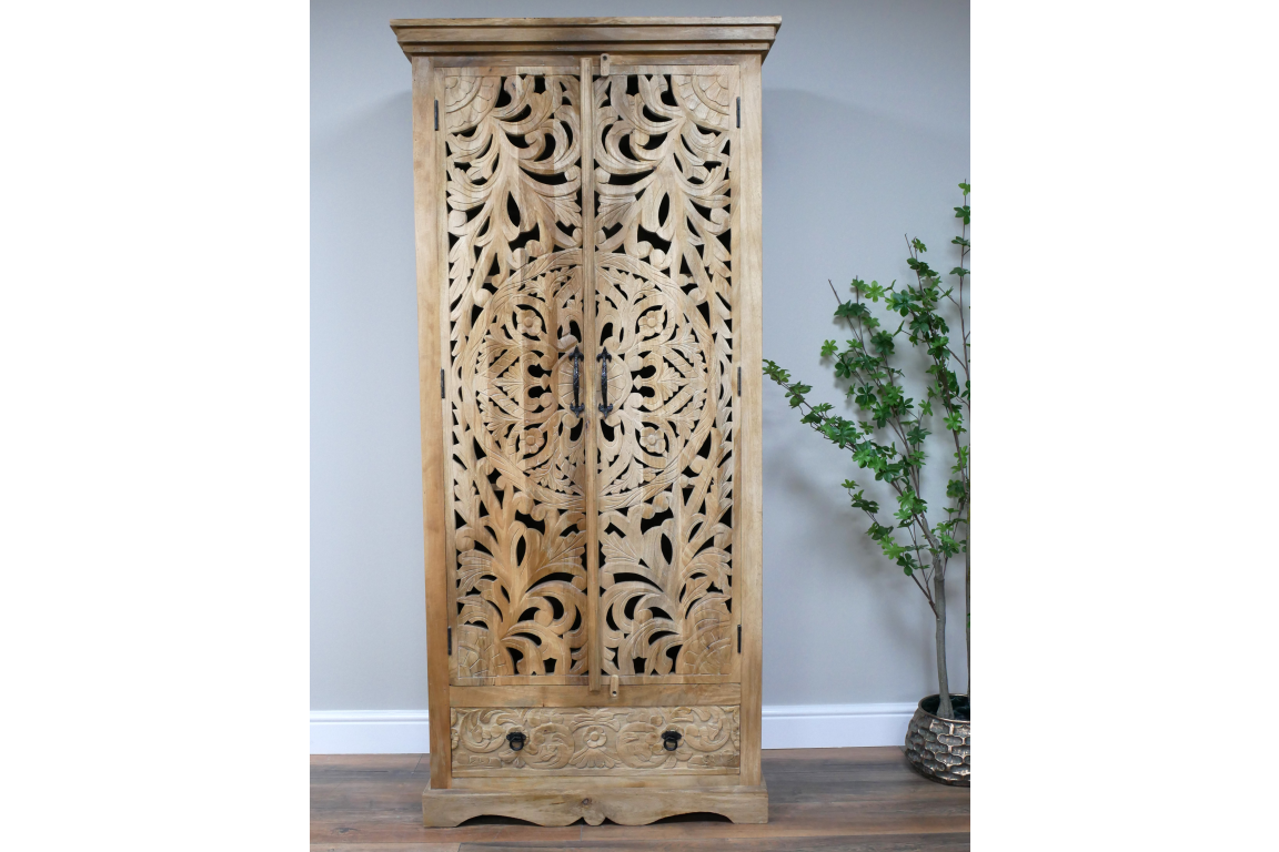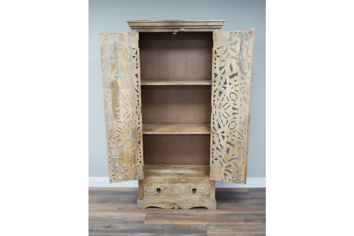 The Carved Cabinet exudes a charming and elegant design, perfect for adding a touch of sophistication to any room. Crafted from high-quality mango wood, this cabinet showcases intricate carvings that give it a timeless and luxurious feel. The rich wood grain and hand-carved details create a unique piece that stands out as a focal point in your living space.
