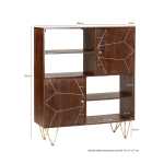 A versatile furniture piece designed for both living rooms and offices, the Dark Gold Display Cabinet from Home Centre Direct offers a perfect blend of style and functionality. Featuring 4 open shelves ideal for displaying books, files, or decorative items, and 2 cupboards with internal shelves for discreet storage, this cabinet is a practical storage solution with a touch of elegance. The dark walnut finish with gold metal inlays on the front adds a touch of sophistication to any space.
