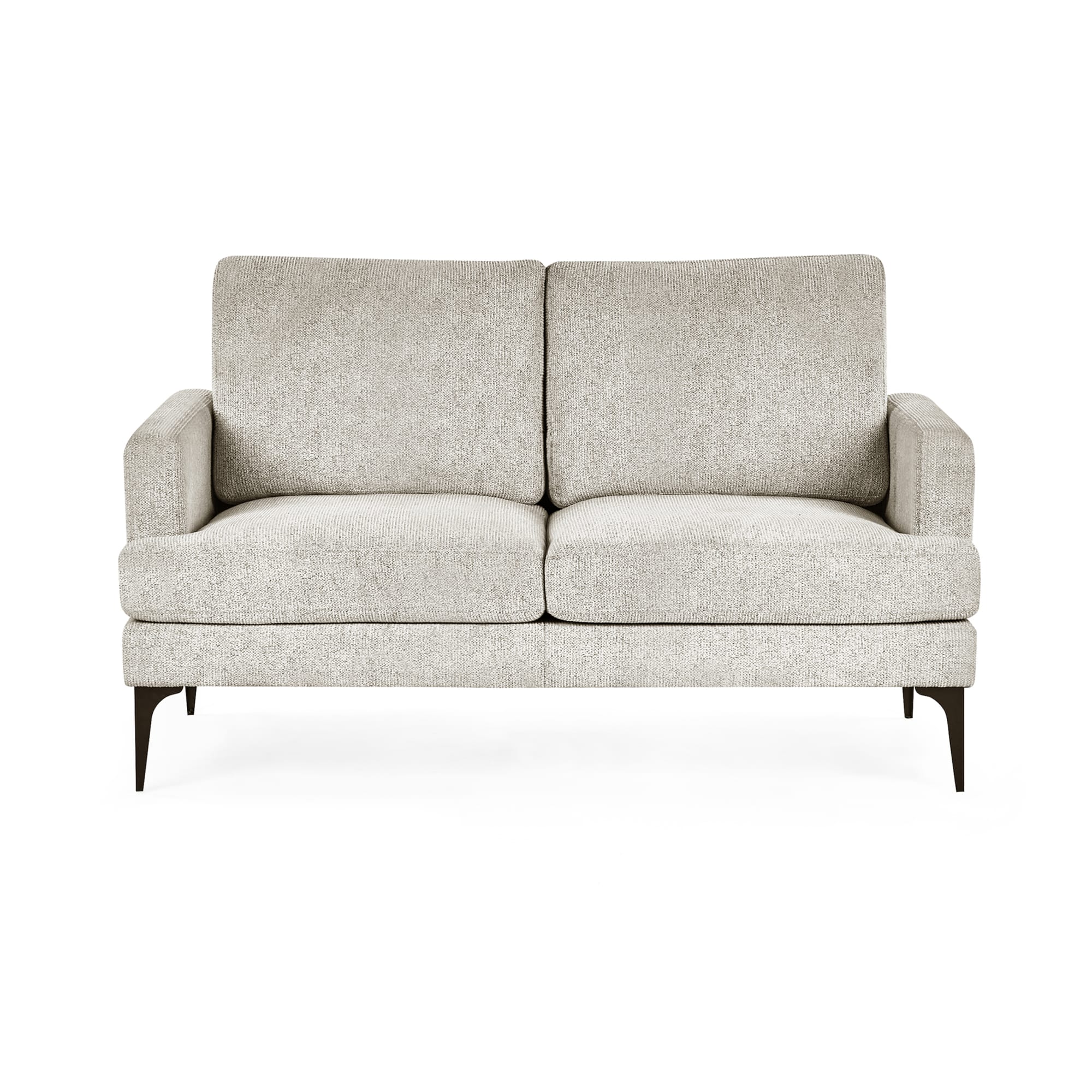 Settle into effortless style with this compact 2 seater sofa in soft cream oyster chenille fabric. The clean-lined silhouette lends a refined touch, making it a versatile choice for smaller spaces or an elegant addition to larger rooms. Supportive, well-padded cushions offer lasting comfort, whether used for everyday relaxation or occasional seating. Finished with slim black legs for a modern edge, this piece combines style with practicality. Partial assembly is required, with only the legs needing to be attached for quick and easy setup.