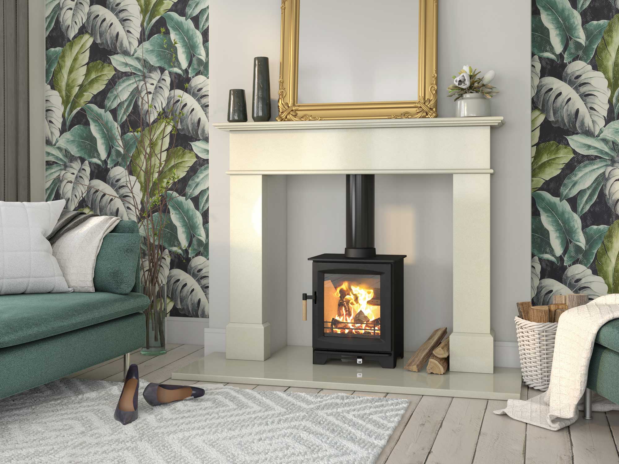 The Balmoral fireplace exudes timeless elegance, reminiscent of the grandeur found in 18th-century manor houses. Its versatile design is a popular choice, adding a touch of sophistication to any living space. Crafted in stately Honed Grey finish, this fireplace is showcased with Henley's Cheltenham Stove and a polished black granite hearth for a luxurious look.