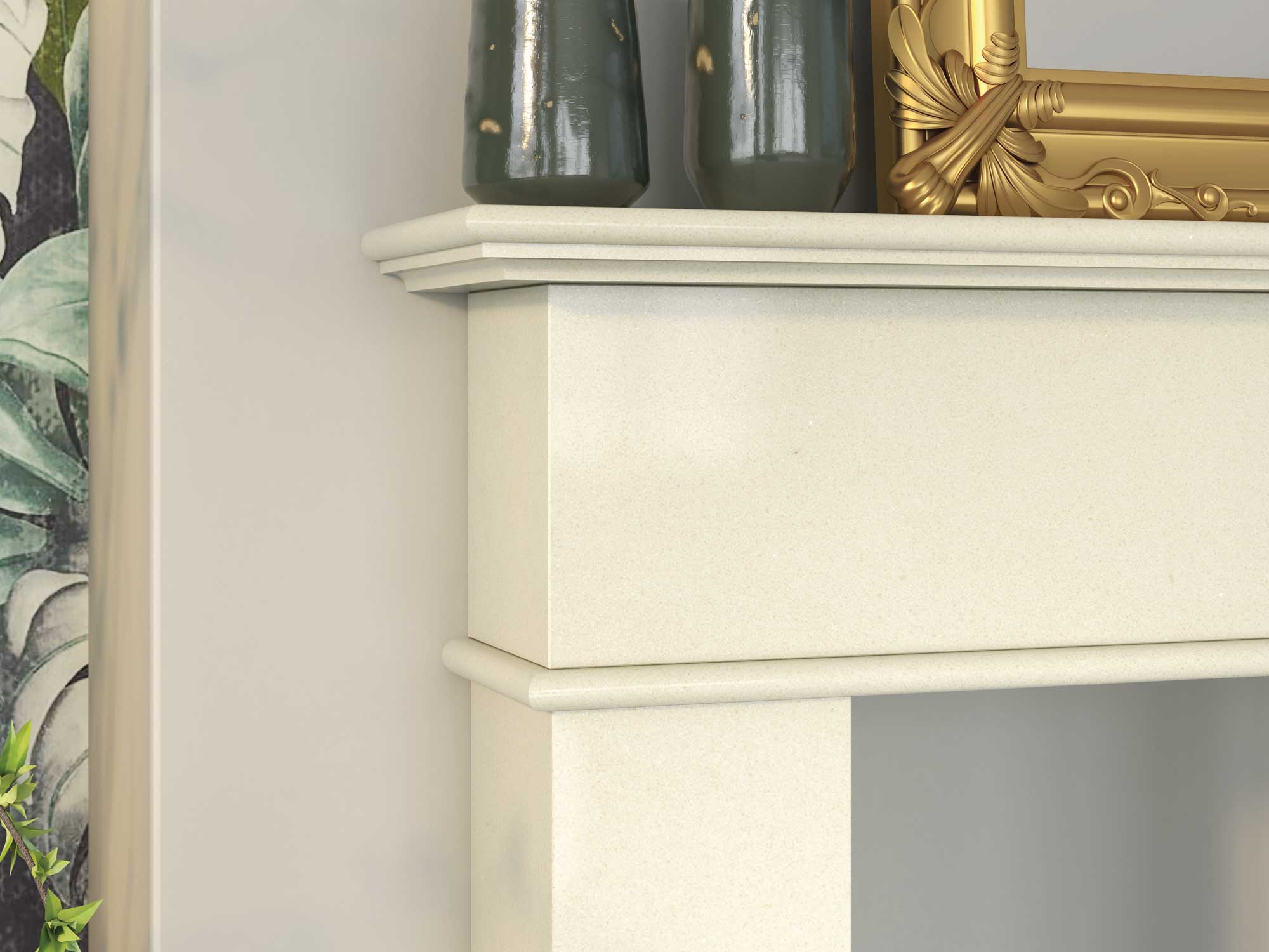 Available in Ivory Pearl, Alpine White, and Honed Grey finishes, the Balmoral fireplace offers a range of options to suit different interior styles. The 54'' size, with a height of 1142mm, excluding the hearth, and a width of 1375mm, provides a striking focal point in any room. Elevate your home with the classic charm and exquisite craftsmanship of the Balmoral fireplace from Home Centre Direct.