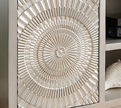 The Frenso TV Unit in Silver exudes elegance and sophistication with its geometric design and reflective silver finish. Effortlessly organise your entertainment area with this sleek and stylish unit that adds a touch of grace to any room.