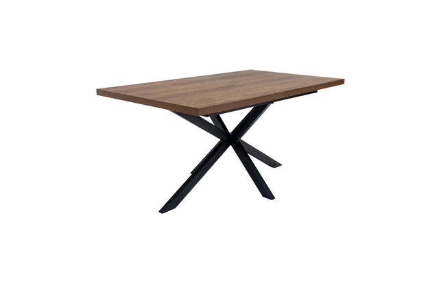 Elevate your dining experience with this stunning modern table, designed to blend functionality with contemporary aesthetics. The dark oak melamine surface exudes sophistication, while the striking X-shaped industrial black powder-coated legs offer a bold visual contrast, making it a centrepiece in any dining area.