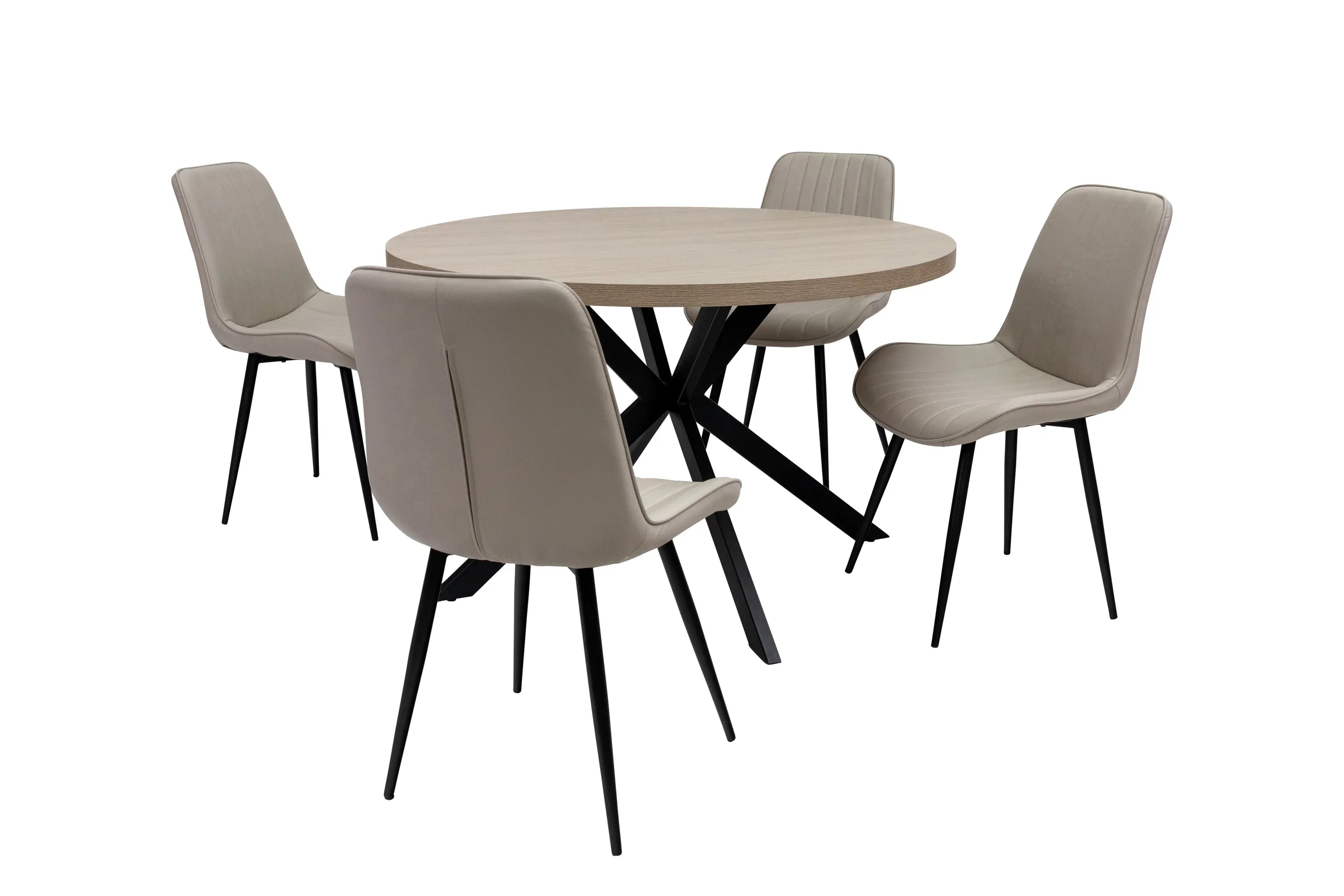 Transform your dining experience with this exquisite contemporary dining table, designed to bring elegance and simplicity to your home. The beautiful light oak textured melamine top exudes a warm and inviting atmosphere, making it the perfect focal point for family gatherings and dinner parties alike.