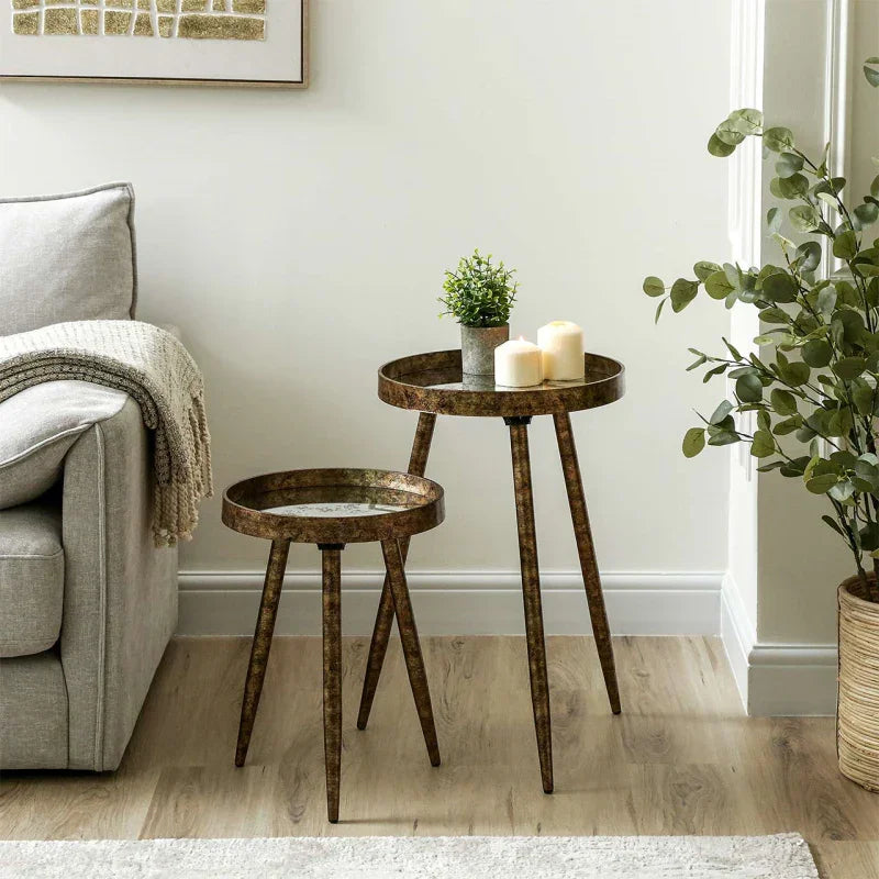 Set of 2 Antique Gold and Mirror Top Nesting Table
