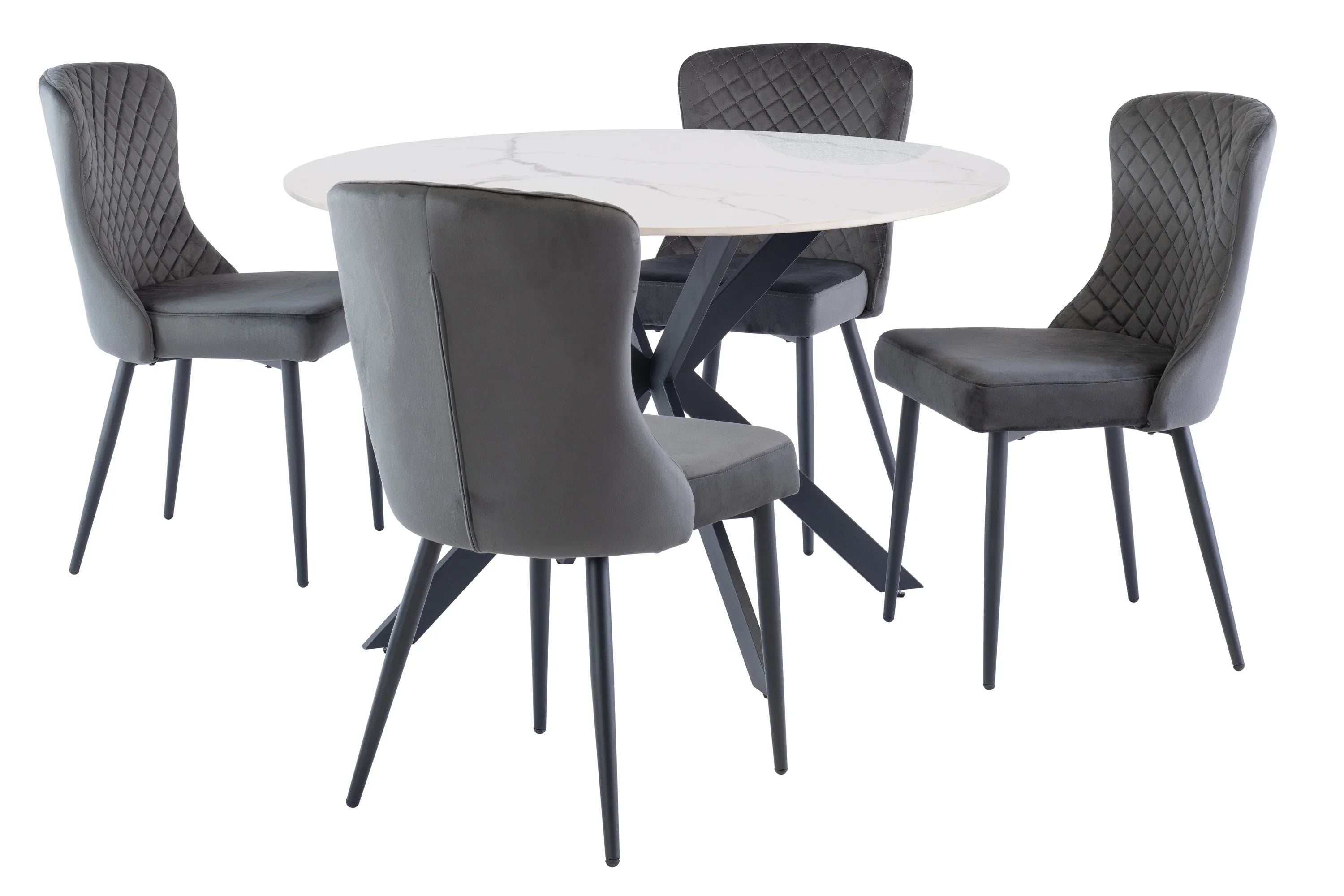 Transform your dining experience with this stunning grey dining table, designed to elevate any kitchen or dining area. Its sleek and modern aesthetic, featuring a polished grey Sintered Stone top, not only adds a touch of elegance but also ensures durability and ease of maintenance. With ample space for up to four diners, this table is perfect for both intimate meals and lively gatherings.