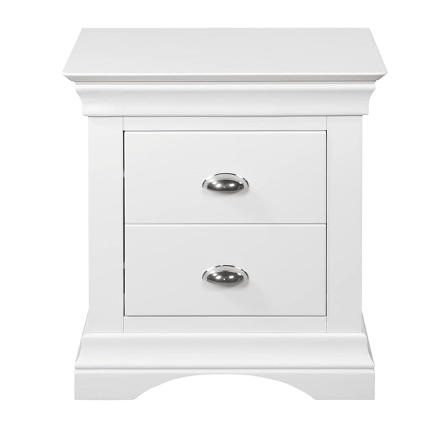 The Bella Two Drawer Locker offers both style and functionality, ma it an essential piece of storage furniture for your bedroom. The semi-gloss white finish combined with polished chrome cup handles gives it a modern and versatile look that complements any decor effortlessly.