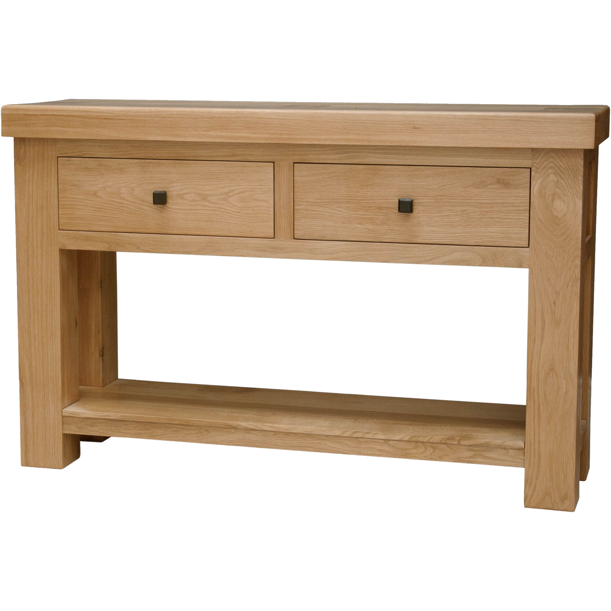The Bordeaux Console Table exudes elegance and functionality, crafted from high-quality oak with a beautiful lacquer finish. This exquisite table stands at 800mm tall, 1250mm wide, and 350mm deep, weighing 44kg. Featuring two dovetail drawers, this console table offers ample storage space for your essentials, seamlessly blending style with practicality.