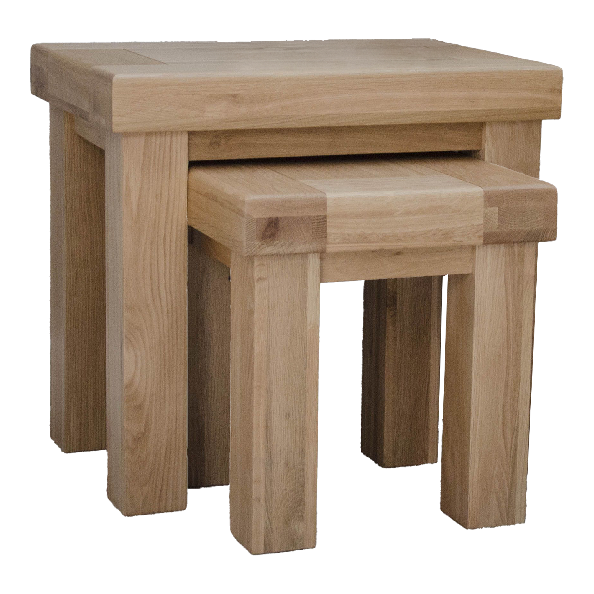 Enhance your living space with our exquisite Bordeaux Nest of Tables, expertly crafted from solid oak to bring a touch of elegance to your home. The set includes two tables, with the large table boasting dimensions of H 500mm W 600mm D 400mm and the smaller companion featuring dimensions of H 430mm W 380mm D 400mm. Both tables are finished with a sleek lacquer finish, adding a sophisticated charm to any room.