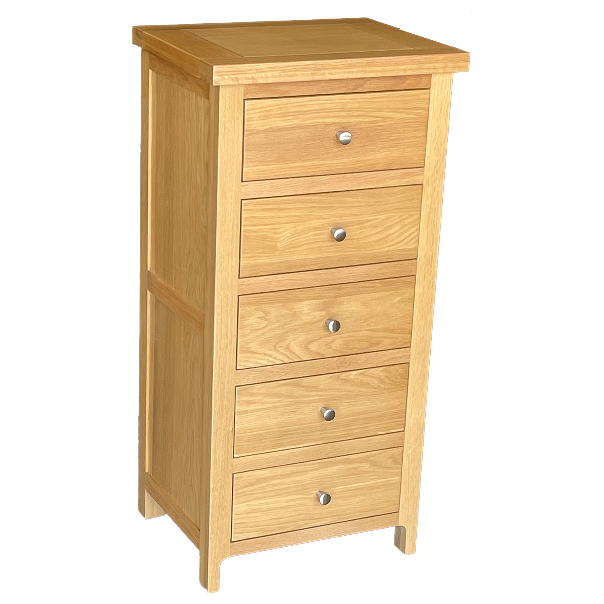 Crafted from solid American Oak frames, Paulownia drawer boxes, and Oak Veneer centre panels, the Como Chest exudes quality and durability. The clear lacquer finish not only adds a beautiful sheen but also protects the wood, ensuring longevity. The internal drawer dimensions of H - 115mm, W - 340mm, D - 280mm offer practicality and convenience.