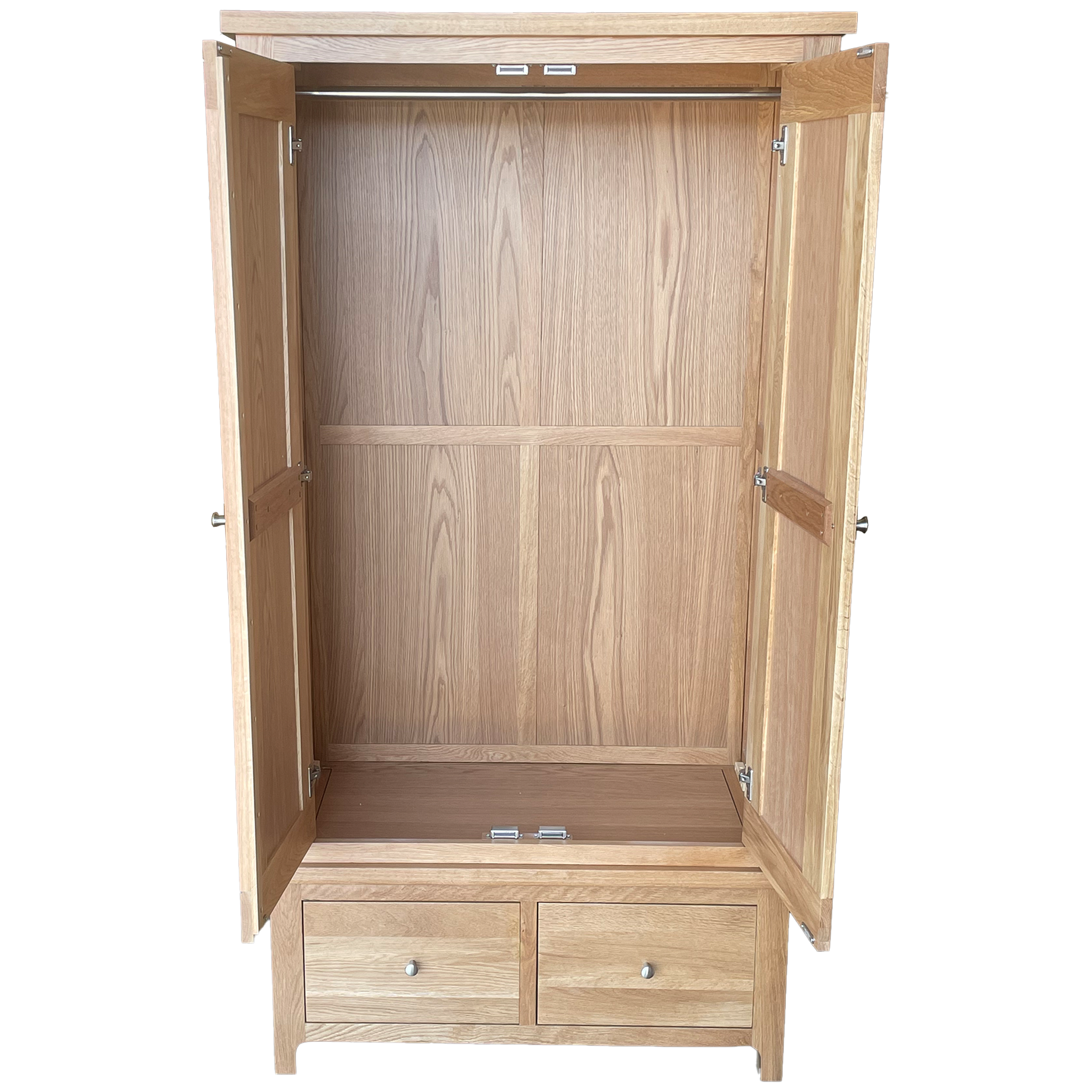 Enhance your bedroom with the sophisticated Como Gents' Wardrobe, a stunning piece designed for both style and functionality. Crafted with meticulous attention to detail, this wardrobe boasts an internal hanging rail, concealed door hinges, and widened door frames, ensuring smooth and quiet operation. The two deep drawers at the bottom offer ample storage space, while the wooden runners and dovetailed drawer boxes showcase the quality craftsmanship of this piece. The stylish arched legs and Nickel-plated knobs add a touch of elegance to your room.