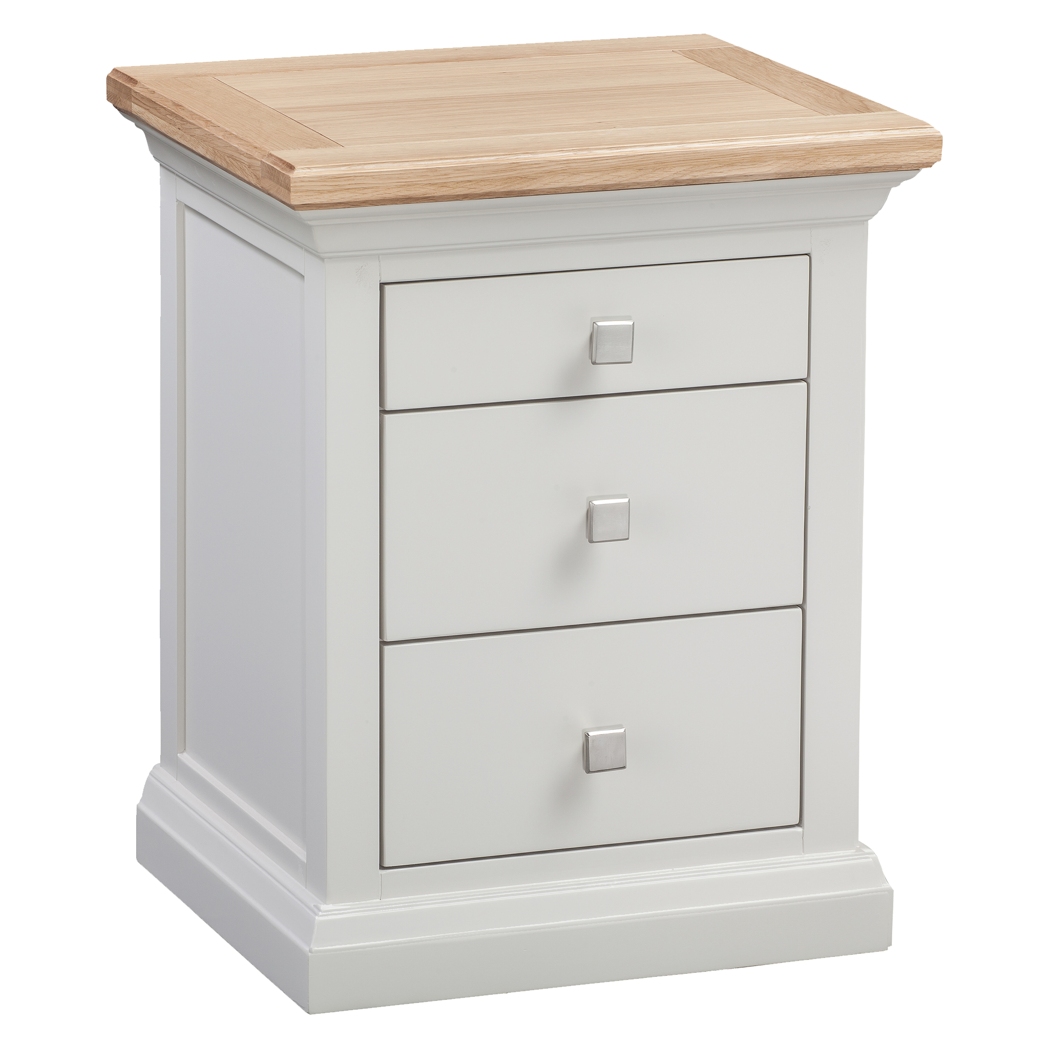 The Cotswold 3 Drawer Bedside table is the perfect addition to your bedroom, combining style and functionality seamlessly. Crafted from painted pine with a stunning lacquered oak top, this bedside cabinet exudes elegance and charm. The shallow drawer on top is ideal for storing smaller items, while the two deeper drawers offer ample space for books, nighttime essentials, or any personal items you want to keep within reach.