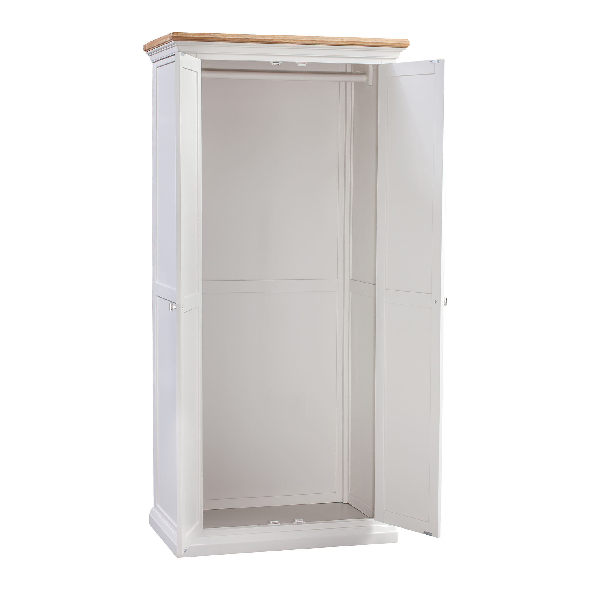 Enhance your bedroom with the timeless elegance of our Cotswold Ladies' Robe. This 2 door wardrobe offers ample storage space, ma it perfect for those in need of a stylish yet functional storage solution. Crafted from painted pine with a lacquered oak top, this wardrobe exudes quality craftsmanship and durability.