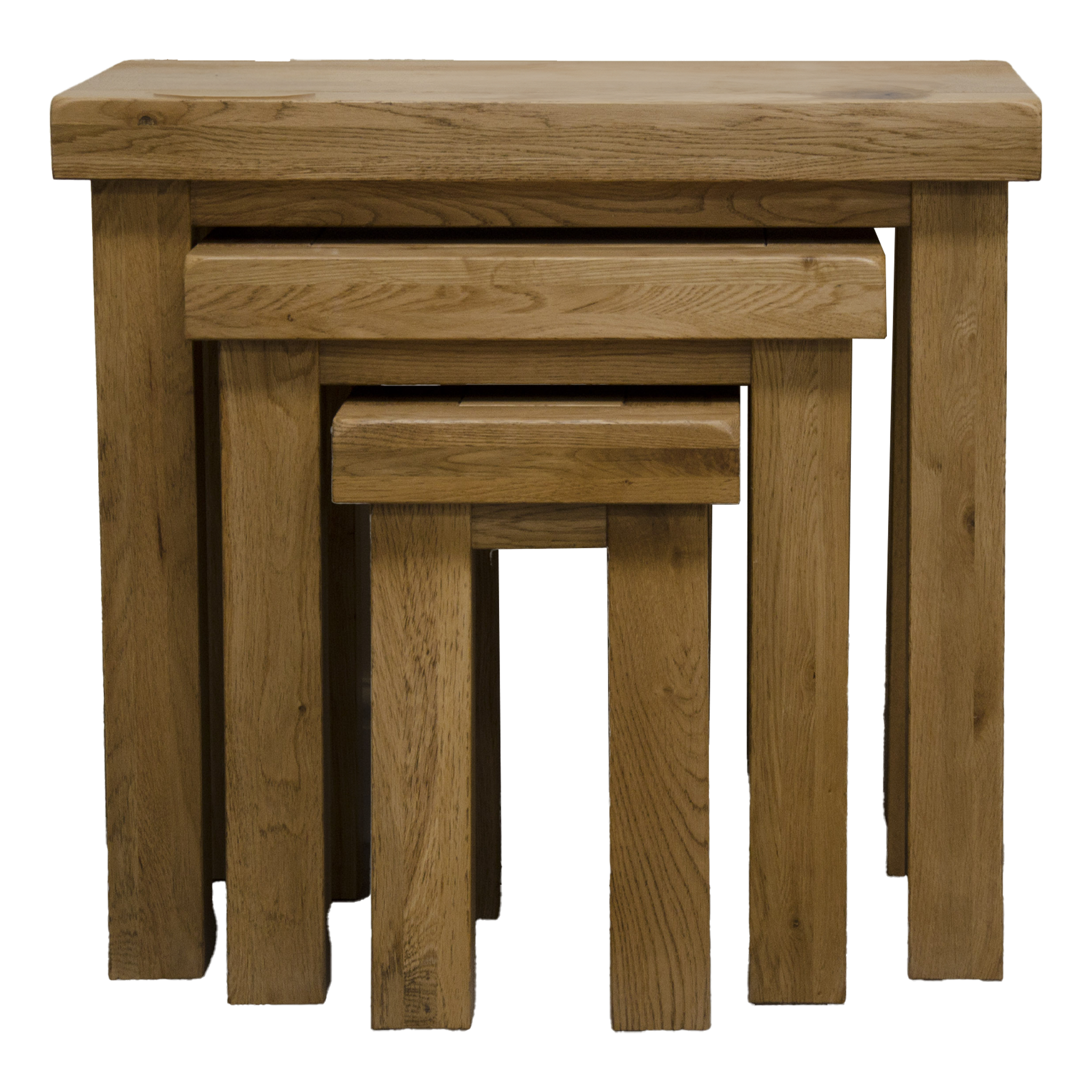 Introducing our exquisite Deluxe Nest of Tables, a testament to superior craftsmanship and timeless elegance. Crafted from high-quality oak and solid oak engineered centre panels, this set exudes sophistication and durability. The set comprises three tables of varying sizes that can be effortlessly nested together, offering both functionality and style. The largest table stands tall at 550mm, with a generous width of 600mm and depth of 400mm. The middle table boasts dimensions of 460mm in height, 420mm in width, and 400mm in depth, while the smallest table is compact yet impactful at 370mm height, 240mm width, and 400mm depth. Each table is adorned with a sleek lacquer finish, enhancing its natural beauty.