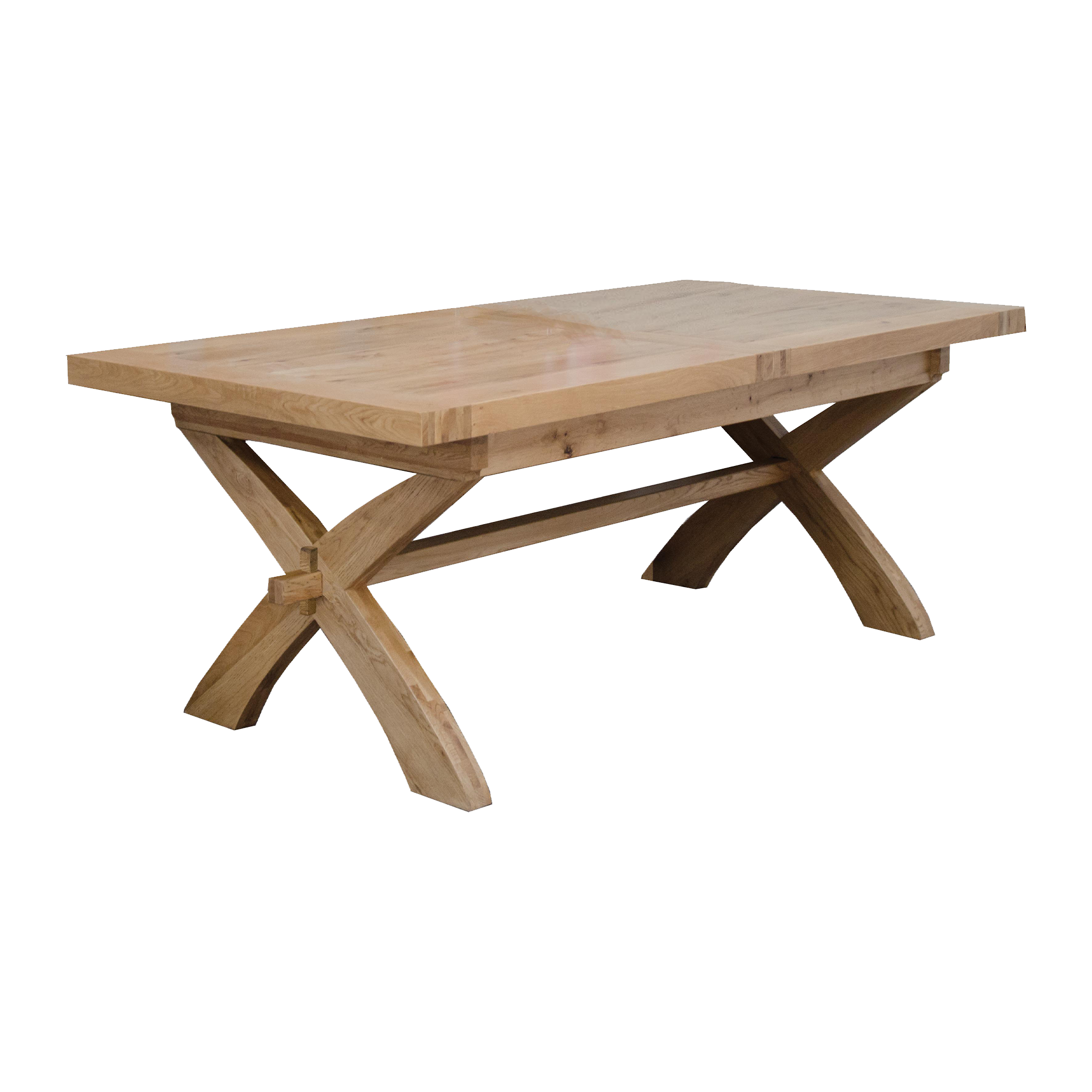 The Deluxe X-Leg Twin-Leaf Extending Table exudes elegance and versatility, ma it a focal point in any dining space. Crafted from high-quality oak and solid oak engineered oak for the centre panels, this table showcases superior craftsmanship and durability. The x-shaped legs not only enhance its visual appeal but also ensure stability, providing a sturdy foundation for dining gatherings.