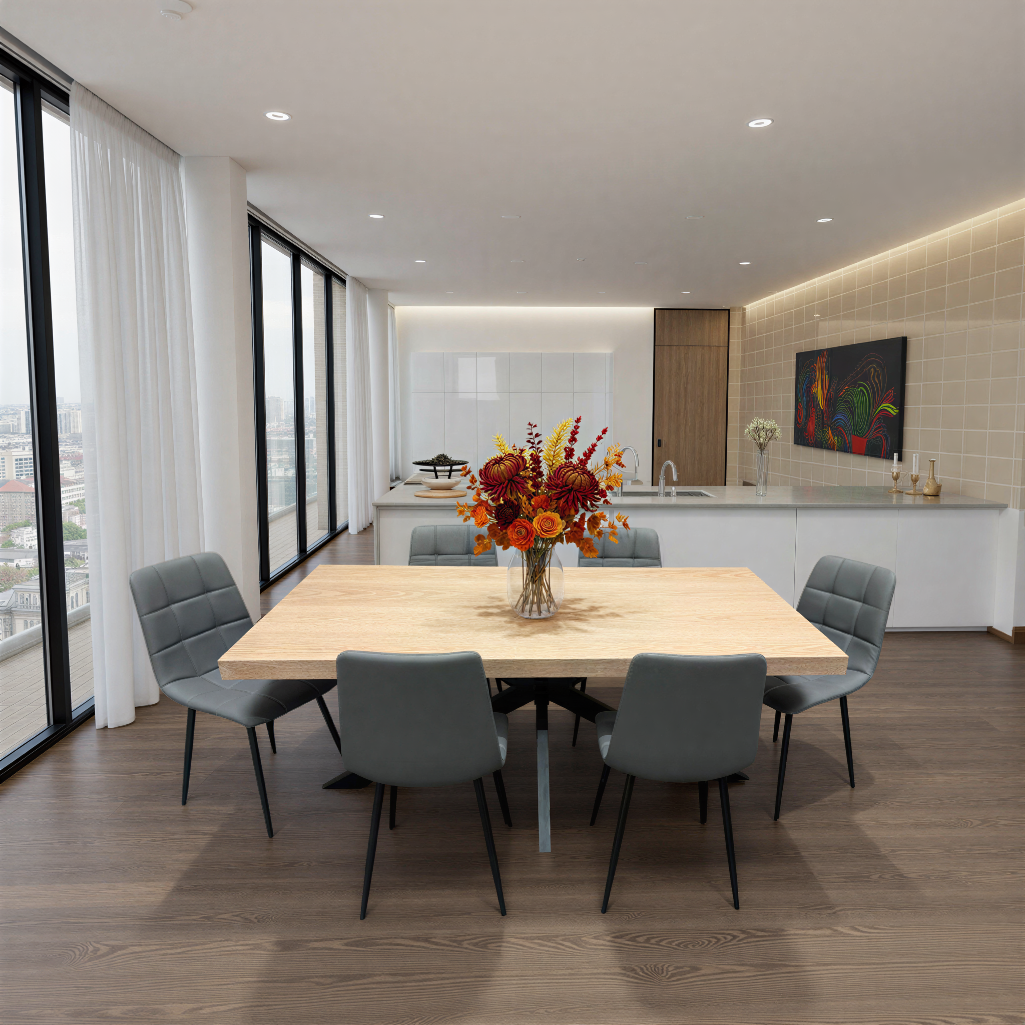 This luxurious Manor Oak 1.8 Metre Table with 6 Fredrik PU Chairs set will elevate your bathroom's style and functionality. Crafted with premium oak, this furniture piece exudes elegance and durability, making it a perfect fit for your bathroom space. The set includes six Fredrik PU chairs available in Black, Grey, or Taupe, allowing you to customise the look to suit your taste.
