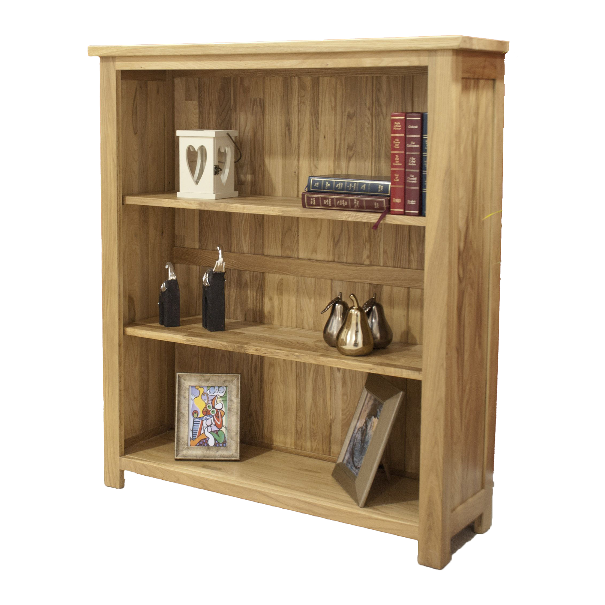 The Opus Small Bookcase is a stunning piece of furniture crafted from 100% solid oak, radiating elegance and durability. Standing at 1050mm tall, 915mm wide, and 300mm deep, this bookcase is a perfect addition to any home see a touch of sophistication. The two adjustable oak shelves provide ample space for your favorite books, decor, or keepsakes, offering both functionality and style.