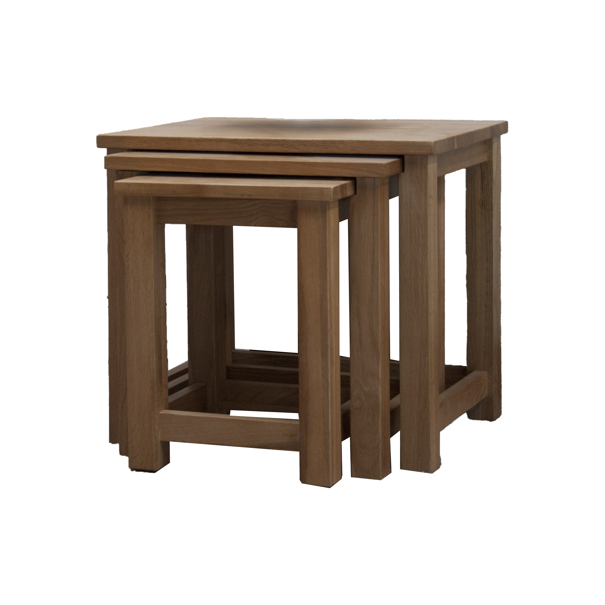 The Opus Triple Nest of Tables is a stunning addition to any living space, crafted from 100% solid oak for timeless elegance and exceptional durability. This set includes three tables, each designed to nest perfectly within one another, providing versatility and space-saving functionality. The tables are finished with a clear lacquer, enhancing the natural beauty of the oak while offering protection against daily wear and tear.