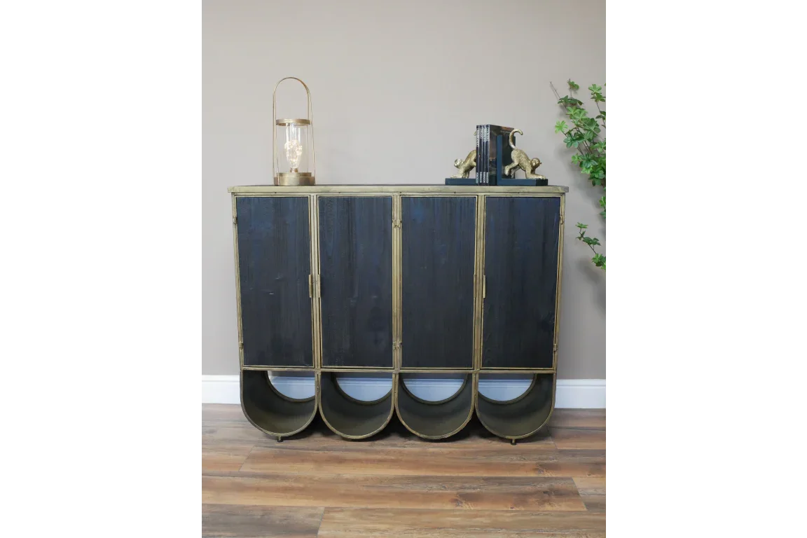 Ideal for storing books, dinnerware, or decorative items, this cabinet can be used in the living room, dining area, or home office. The combination of materials creates a stylish contrast that adds visual interest to the room, making it a statement piece that also serves a practical purpose.