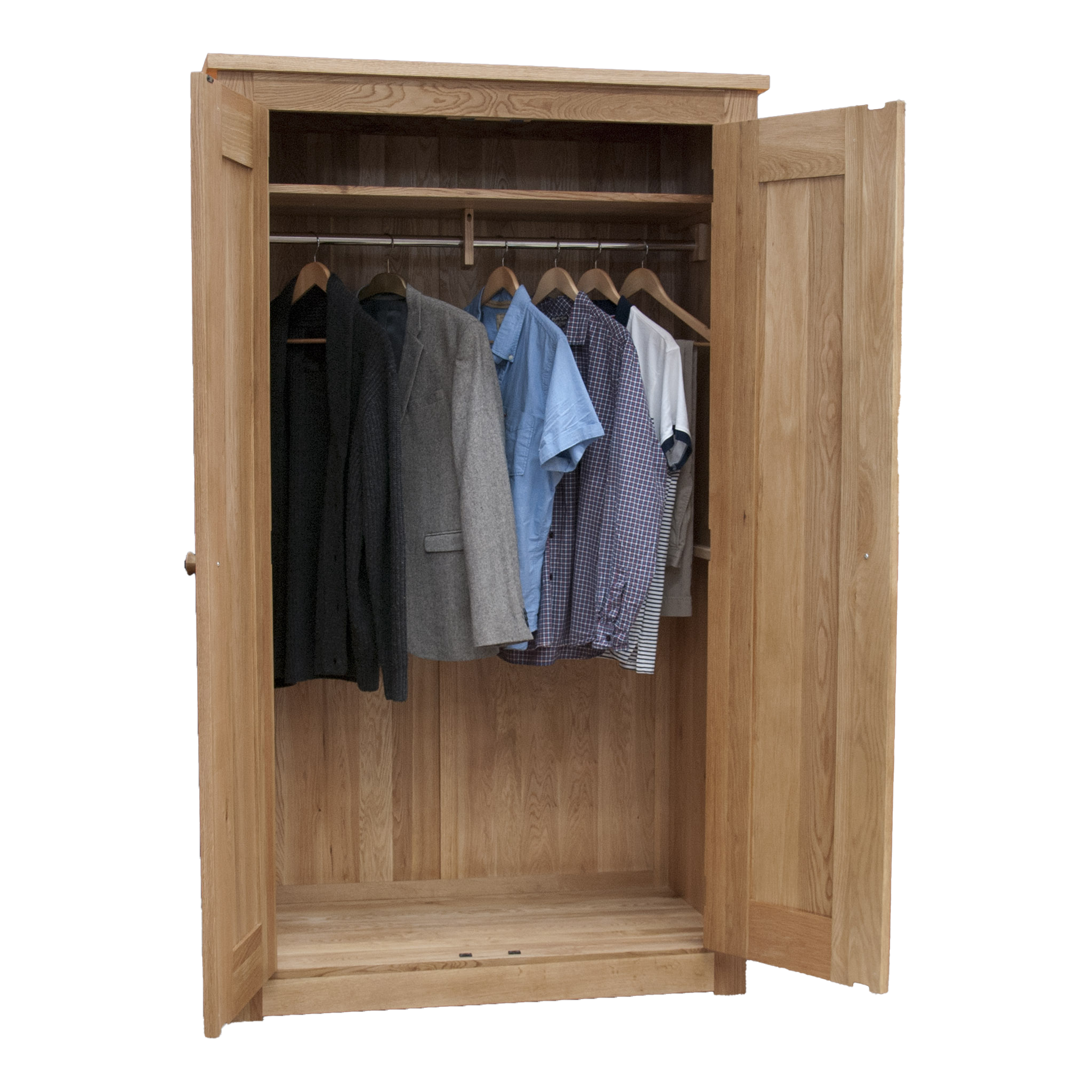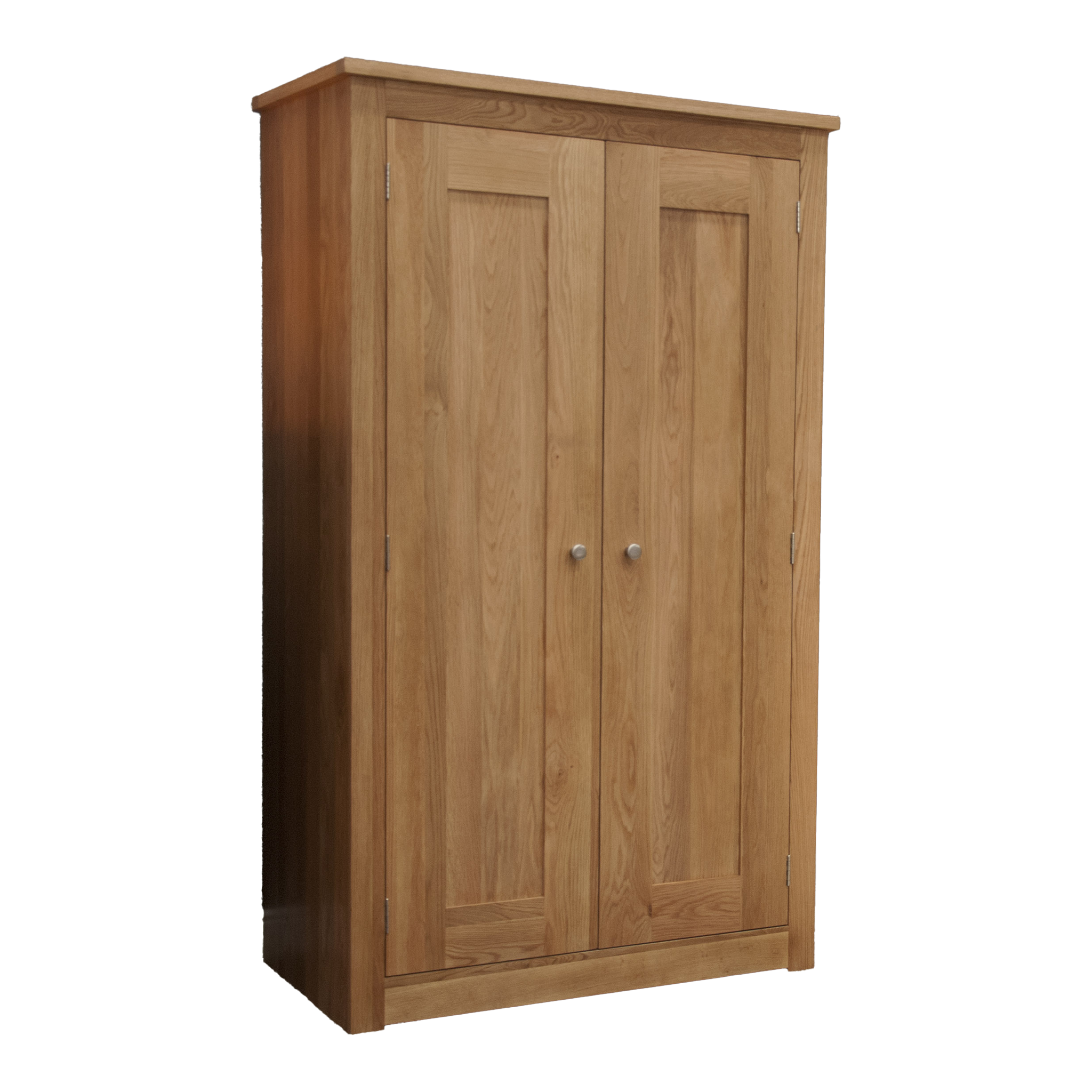 Featuring a hanging rail and oak shelf, this wardrobe provides versatile storage options to keep your clothing and accessories organised. The lacquer finish not only enhances the natural beauty of the oak but also adds a protective layer for lasting quality. The wardrobe comes with two metal knobs as standard, or you can opt for the additional oak knobs for a personalised touch.