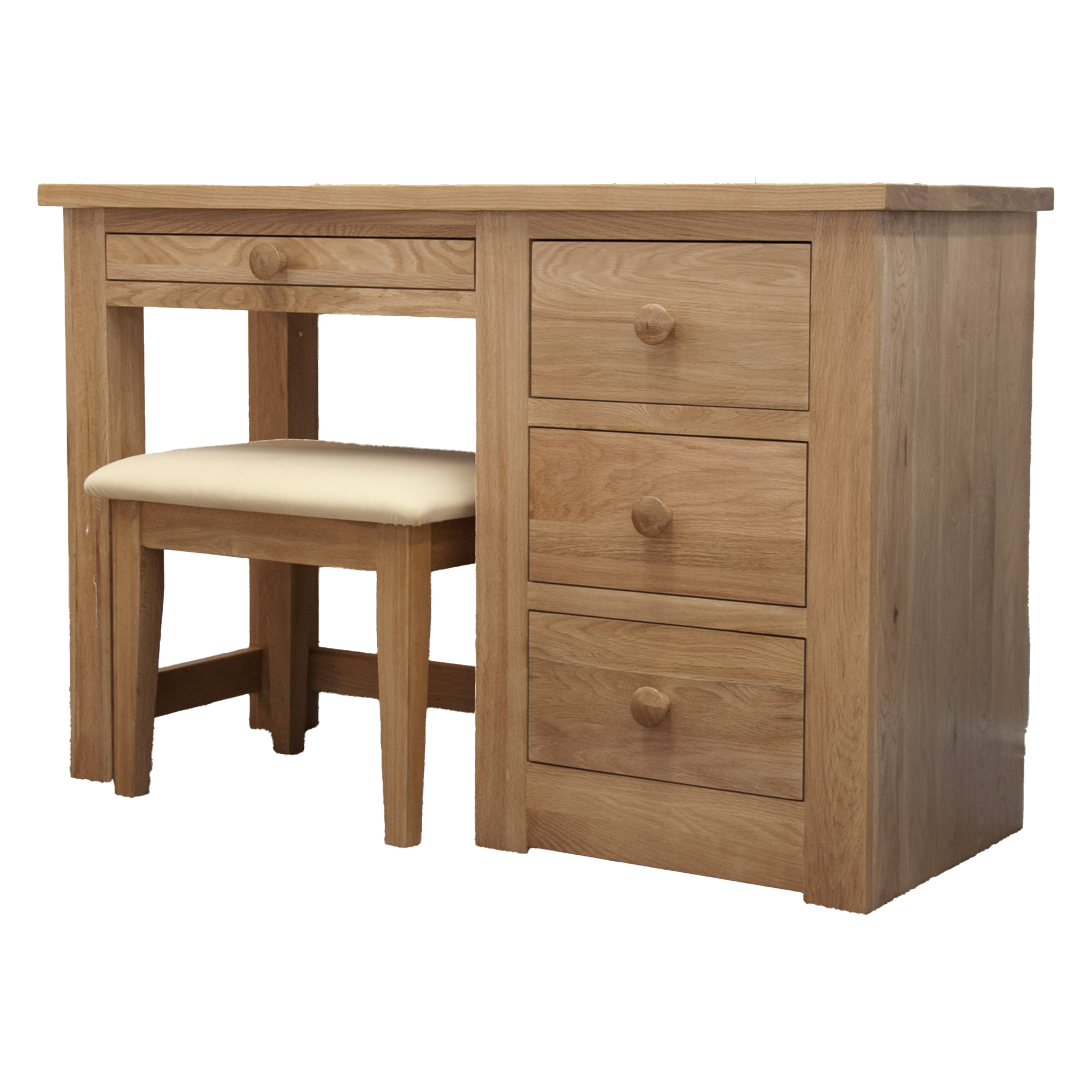 Enhance your daily grooming routine with the exquisite Torino Dressing Table and Stool set. Crafted from solid oak with a rich lacquer finish, this stunning piece exudes quality and elegance. The dressing table features three spacious drawers and one small drawer, perfect for organising your beauty essentials. Complete with dovetail construction and metal knobs as standard, elevate your bedroom decor with this timeless ensemble.