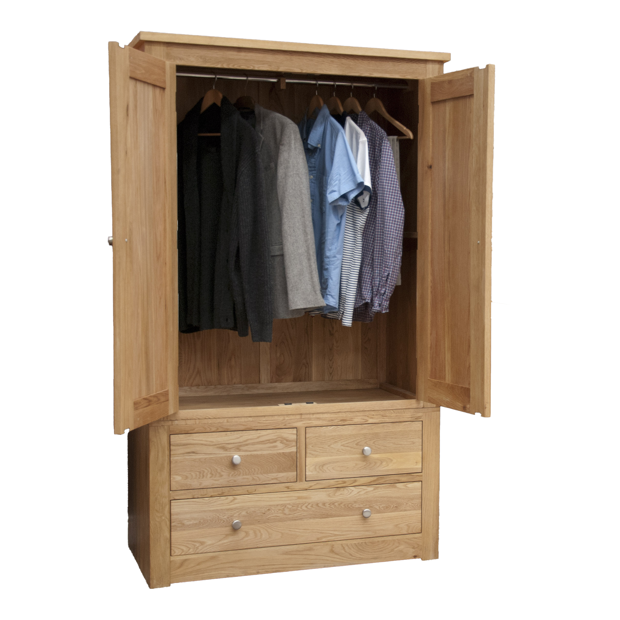 - Customizable Knobs: Comes with metal knobs as standard, with the option to upgrade to additional oak knobs for a personalized touch