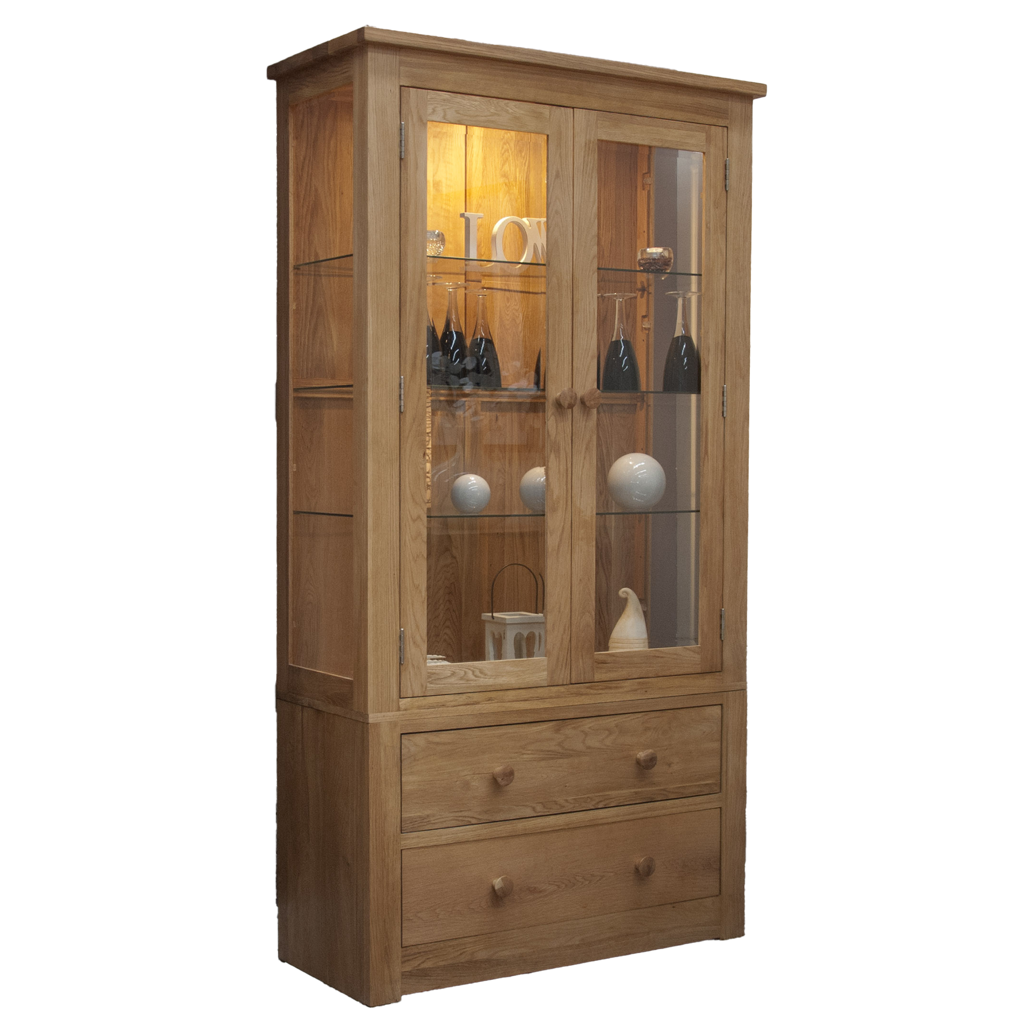 The Torino Glass Display Unit exudes elegance and sophistication, crafted from high-quality oak with a lustrous lacquer finish. Its impressive stature stands tall at 1900mm, while offering ample storage and display space with 2 glass fronted doors and 3 adjustable glass shelves. The subtle metal knobs add a touch of contemporary charm, or opt for additional oak knobs for a more traditional look. This unit also features 2 dovetail drawers and a built-in light, perfect for showcasing your prized possessions.