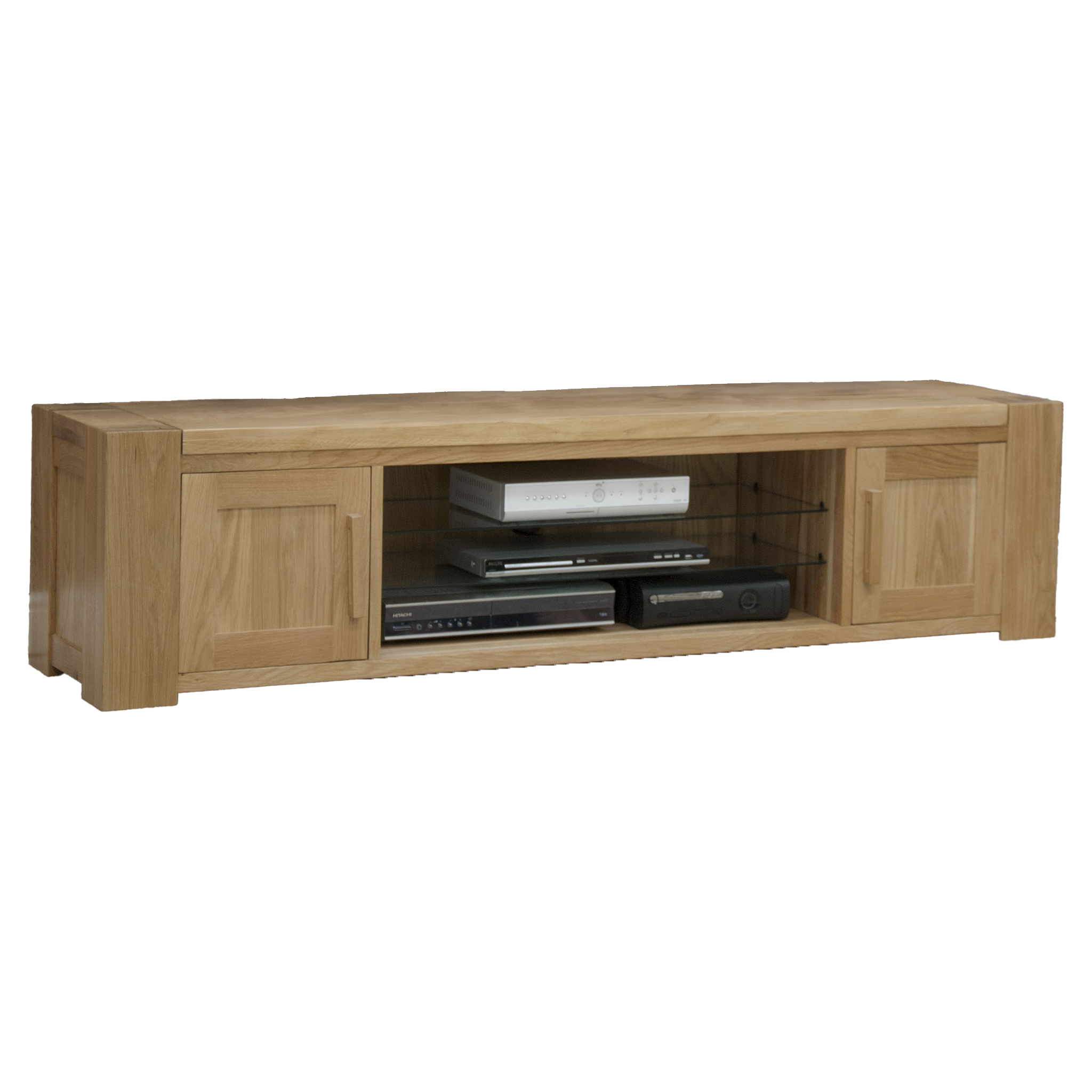 The Trend Large Plasma TV Unit offers a stylish solution for showcasing your television in grandeur. Crafted from solid oak, this unit exudes elegance and durability, ma it a timeless addition to your living space. With two storage doors and a central opening featuring adjustable glass shelves, you have ample space to organize your devices seamlessly. The clear lacquer finish adds a touch of sophistication to the overall design.
