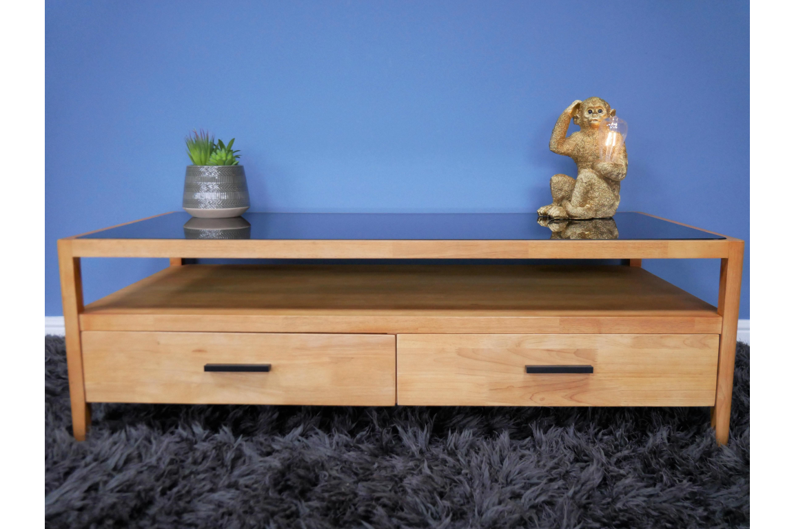 With ample storage space for media accessories and devices, this TV cabinet is not only aesthetically pleasing but also highly functional. The rubber wood frame provides durability and sturdiness, while the black glass shelves add a touch of elegance. Whether you're binge-watching your favourite series or hosting a movie night, this cabinet offers a chic and practical solution for organising your entertainment area.