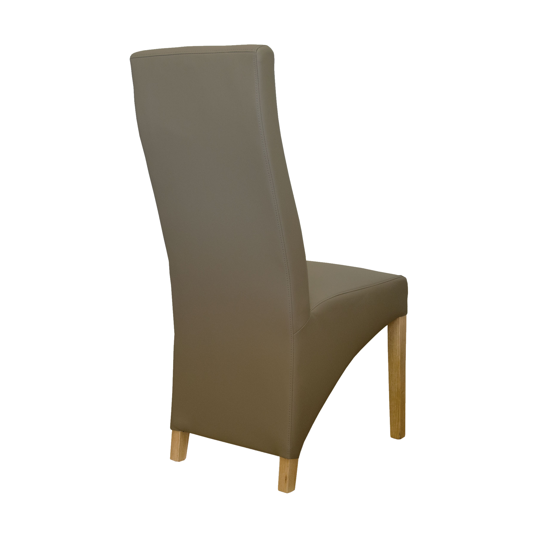 Welcome to the elegant and sophisticated Wave Mushroom Dining Chair. Crafted with meticulous attention to detail, this dining chair is a standout piece from the Wave collection. The chair features sturdy legs made from solid oak with a clear lacquer finish, providing both durability and a touch of natural beauty to your dining space. Upholstered in luxurious bonded leather in a captivating mushroom colour, this chair exudes a sense of modern charm.