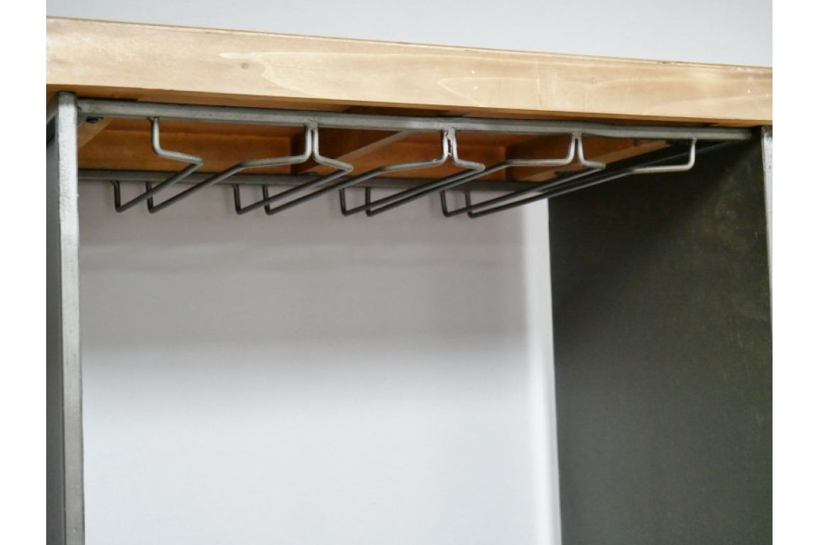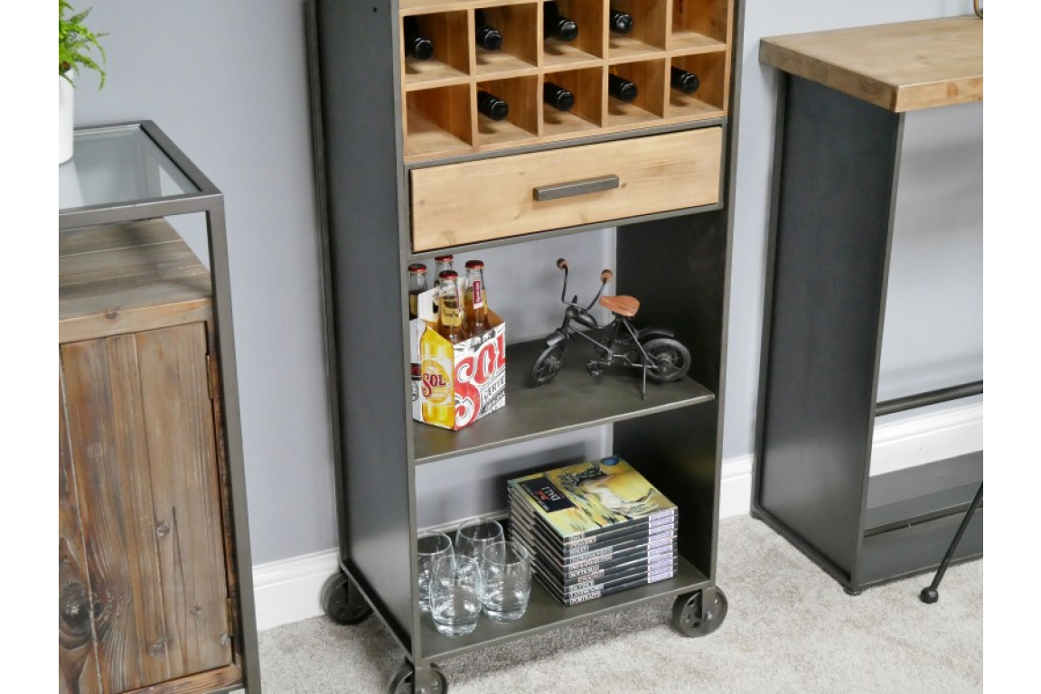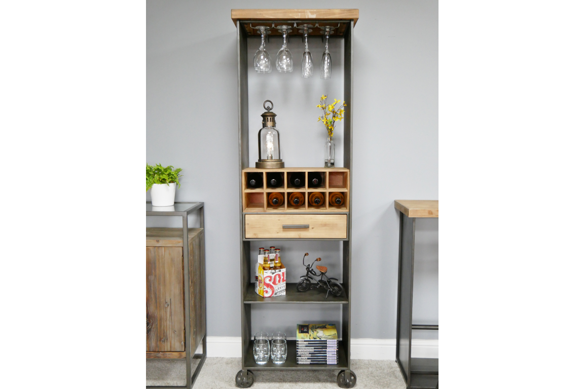 This wine cabinet exudes a rustic charm with its combination of metal and fir wood. The sleek metal frame provides a sturdy structure, while the warm tones of the fir wood add a touch of natural beauty to the piece. Its industrial design is perfect for adding character to any space, whether it's a modern loft apartment or a farmhouse-inspired home.